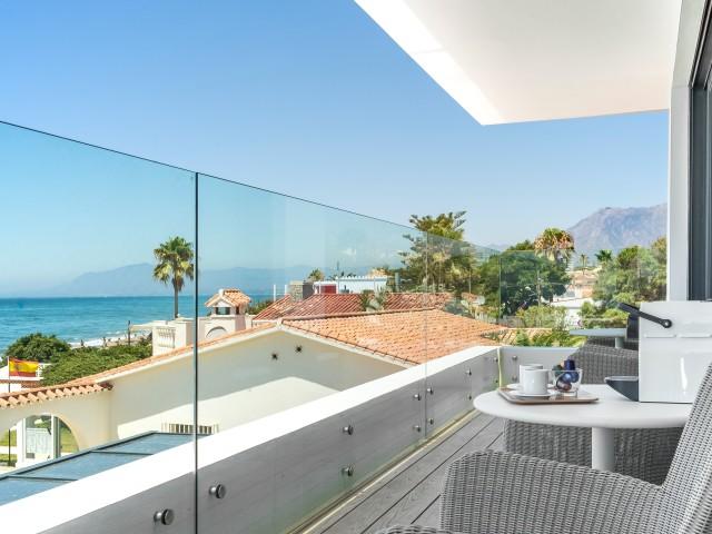 Cette propriété spectaculaire en première ligne est située sur la plage de Costa Bella, entourée de sable doré et de dunes naturelles. L´emplacement, située à l´est de Marbella, est proche de toutes les installations et à une courte distance du centre de Marbella et de l´aéroport de Malaga. La propriété a été récemment construite selon les normes les plus élevées, conçues par le célèbre architecte Jose Carlos Moya de Marbella, se distinguant par sa sophistication moderne et son élégance simple. Orientée sud ouest, la propriété bénéficie de superbes vues sur la mer et de magnifiques couchers de soleil. L´utilisation du bois, du verre, de la pierre et du béton a créé une maison familiale exceptionnelle. La propriété comprend un système de maison intelligente et toute la technologie moderne, y compris l´eau chaude solaire et chauffage au sol, système de récupération de chaleur, pompes à chaleur à haute efficacité, climatisation VR et contrôle automatisé de chaque pièce, sonorisation sans fil Sonos. Le design intérieur ne comprend que des matériaux de première qualité, des portes et fenêtres en aluminium de première qualité, du marbre de première qualité, des armoires en chêne, des planchers en chêne naturel dans toute la maison, du carrelages de qualité supérieure, un éclairage LED. Au rez de chaussée: La porte d´entrée s´ouvre sur le hall d´entrée spacieux double hauteur, menant à un vaste salon avec salle à manger et grande cuisine ouverte, entièrement équipée avec les derniers appareils modernes. Du côté de la plage, de la cuisine et du salon, de grandes portes coulissantes avec des stores électriques s´ouvrent sur une terrasse et la piscine chauffée. Un chemin vous mène à travers les dunes de sable directement à la plage. La dune privée magnifiquement aménagée offre une intimité totale aux espaces de détente et de restauration sur la terrasse. Au niveau de l´entrée il y a aussi une chambre d´amis avec dressing, et une salle de bain avec douche, WC et lavabo. Premier étage: À l´étage, , il y a la chambre principale, avec deux ensembles de penderies, et salle de bains principale avec douche, double vasque large, toilettes, et l´accès à la terrasse. Il y a deux autres chambres et une salle de bain partagée avec douche, WC et lavabo. Chacune de ces chambres a un accès direct à la terrasse face à la mer et offre une vue imprenable sur la plage. Solarium: Sur le toit, il y a une fabuleuse terrasse ouverte avec des équipements de fitness, une pergola et un jacuzzi, et, bien sûr, de superbes vues à 360 degrés. Sous-sol: Au niveau inférieur, il y a deux autres chambres doubles avec lumière naturelle, placards, une salle de bains avec lavabo, douche et WC. Le niveau inférieur dispose également d´un SPA avec bain à remous, bain à vapeur, sauna et douches; salles de stockage et buanderie. Chaque étage est desservi par l´ascenseur et l´escalier en chêne avec des balustrades en verre.