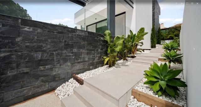 caractéristiques 5-10 minutes des magasins, Air conditionné, Système d´alarme, Terrasse couverte, Cuisine meublée, armoires encastrées, garage, Jardin, Vue sur jardin, piscine, piscine chauffé extérieure, piscine chauffée, Plafonds hauts, Ascenseur, De style moderne, Vue sur les montagnes, piscine, piscine privée, Terrasse privée, Sea water pool, Vue mer, Solarium, solarium et jacuzzi, piscine, Terrasse, Chauffage au sol, Courte distance de la plage.