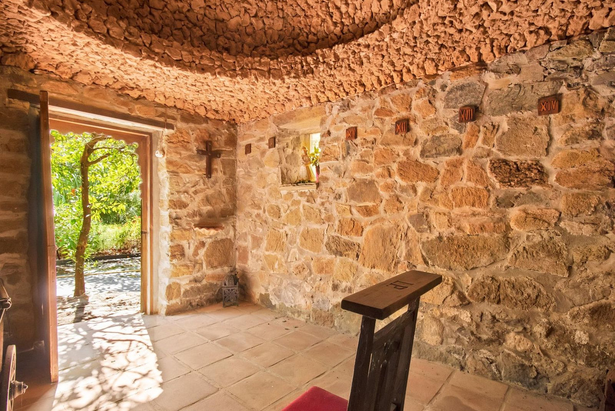 Country house with a total interior surface, in very good condition, with over 19,503 sqm of lush gardens and mature trees, completely gated. Ideal for a first or a second residence, one can enjoy there the peace and total privacy of a perfect green oasis. On top of that, Ojen, at the foot of the Sierra de las Nievas, is only a 20 minute drive from the centre of Marbella. The house itself, a mediterranean style that perfectly fits in the environment, is well manteined, in very good condition, and has two levels. On the ground level there is the living room with chimney and open plan kitchen, and a guest bedroom with bathroom. On the second floor there are two large bedrooms and one bathroom...Additionally, the property also presents:.- Main house: 157m2 (3 bedrooms 2 bathrooms). Secondary home of 60m2 (1 bedroom, 1 bathroom).- Swiming pool of 37 sqm with a spacious area around, and it has a side construction of 13 sqm that includes a bar and a bathroom.- BBQ area of 200 sqm.- Chapel of 15 sqm meters for private ceremonies or meditation. - Bridge that crosses two streams with water all year round.- Private fountain and spring.- Private pinewood. Direct Access to "Ojen Ponds", an outstanding tourist attraction spot.- Economic exploitation of fruit trees, avocados, oranges, figs and mangos.- At present the property is rented as short term touristic rentals, celebration of events and selling of agricultural production. Offers also the possibility of reactivating the vineyard.