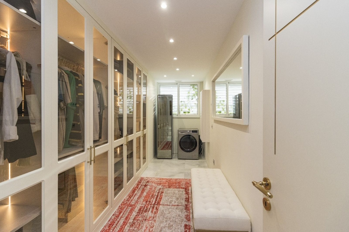 Designer furnished, with exclusive furniture, has Bang & Olufsen system throughout the house, has closed terrace with Lumon glass curtains, climate control system throughout the house. It is well equipped.