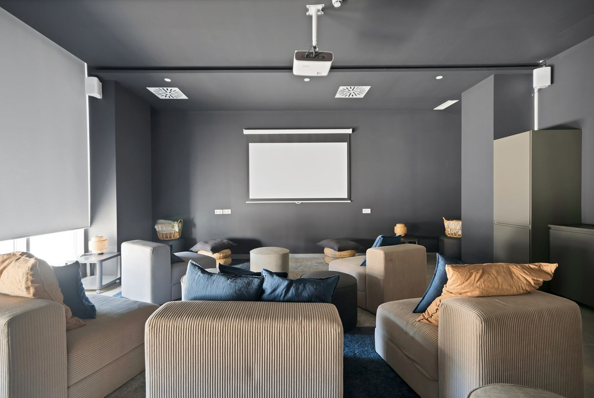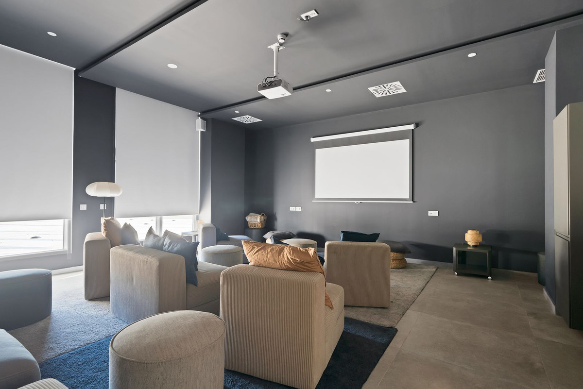 Enjoy innovative communal areas accessible via a user-friendly app, featuring a laundry room, co-working spaces, multi-purpose rooms, a gastro bar, cinema screens, retail spaces, public pedestrian areas, and a bicycle lane. The rooftop pool offers stunning city views, complemented by expansive green spaces for relaxation.