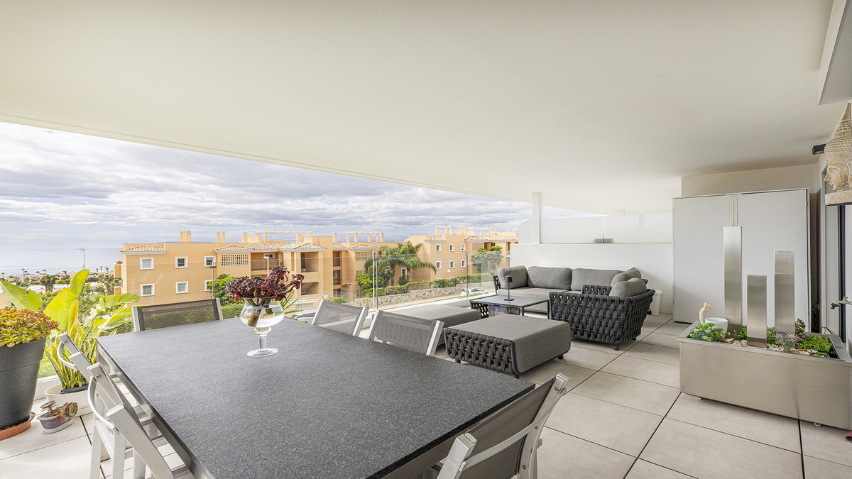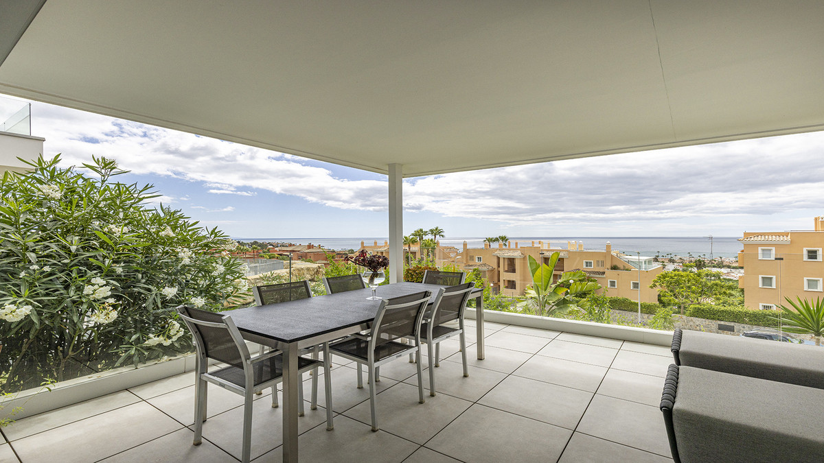 Bienvenue dans ce magnifique appartement d'angle de 3 chambres au rez-de-chaussée situé dans le quartier recherché de Doña Julia, offrant une vue panoramique sur la mer et des équipements de style de vie exceptionnels.