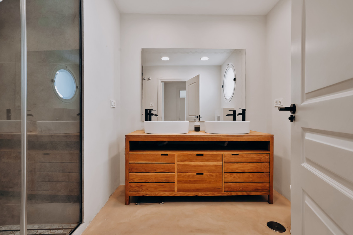 À l'étage, la suite parentale dispose d'une élégante salle de bains attenante, d'un spacieux dressing et d'une grande terrasse offrant une vue imprenable sur la mer. Au rez-de-jardin, trois chambres supplémentaires et deux salles de bains s'ouvrent sur un jardin privé avec vue sur la Méditerranée. Une salle de cinéma, des rangements et une buanderie complètent cet étage, alliant confort et praticité.