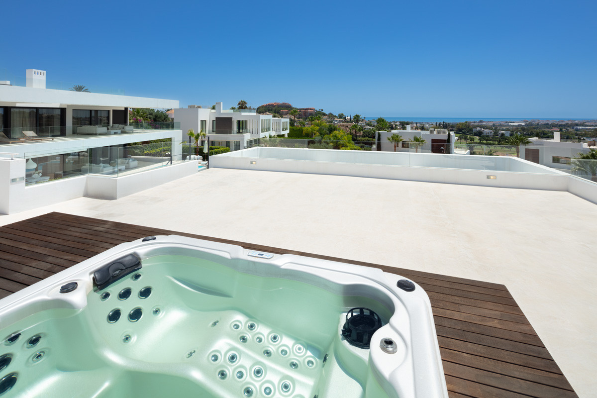 Villa contemporaine de luxe flambant neuve, idéalement située dans la célèbre Vallée du Golf, avec en toile de fond l'emblématique montagne de La Concha à Marbella. Récemment construite avec des matériaux de qualité, cette villa de 6 chambres s'adapte parfaitement au climat andalou et offre de nombreux espaces extérieurs ombragés et propices à la détente. Répartie sur trois niveaux, elle comprend : au rez-de-chaussée : un spacieux séjour avec plusieurs coins salon ; une cuisine ouverte entièrement équipée avec un îlot central et une cave à vin ; une chambre d'amis avec salle de bains privative ; l'accès aux porches, terrasses, piscine et au jardin paysager soigné, agrémenté de plantes matures, qui entoure la propriété, assure une intimité totale avec les habitations voisines. À l'étage : deux chambres d'amis avec salle de bains privative et une vue imprenable sur la Vallée du Golf ; une superbe suite parentale avec dressing et une terrasse panoramique offrant également une vue imprenable. Au sous-sol : une autre chambre d'amis avec salle de bains privative ; un garage pour deux voitures. Possibilité d'aménager une salle de sport à ce niveau. Un abri voiture pour deux voitures. Le chauffage au sol dans les salles de bains et un système domotique complètent la propriété. À quelques minutes de plusieurs écoles internationales, de terrains de golf de classe mondiale, d'expériences gastronomiques et de commodités, cette magnifique maison est située dans un complexe calme et fermé avec sécurité 24 heures sur 24, garantissant une intimité totale.