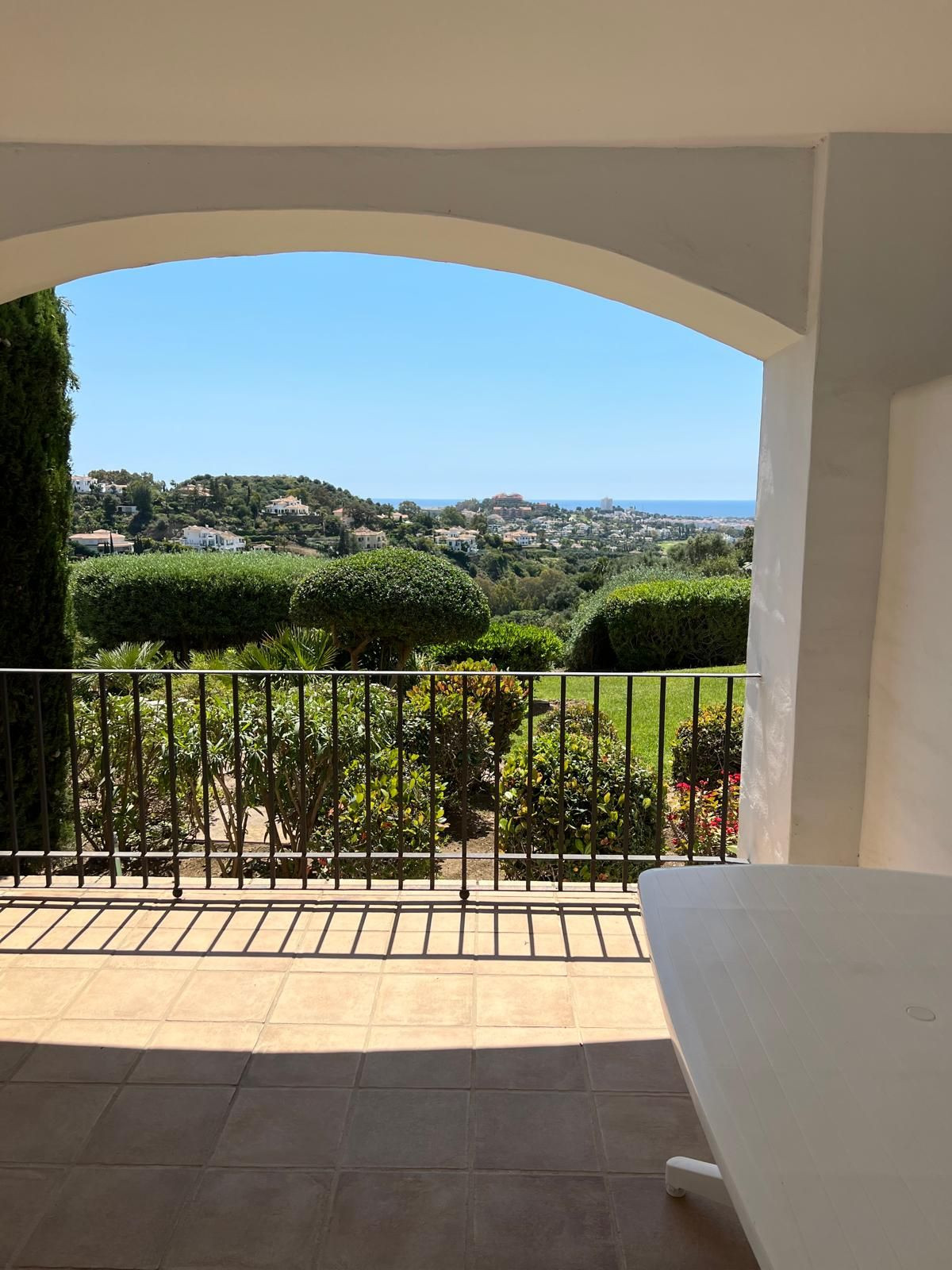 Cette propriété est un grand appartement de 2 chambres au rez-de-chaussée bien aménagé, avec une vue imprenable sur les jardins luxuriants et le golf de La Quinta jusqu'à la mer Méditerranée et La Concha.