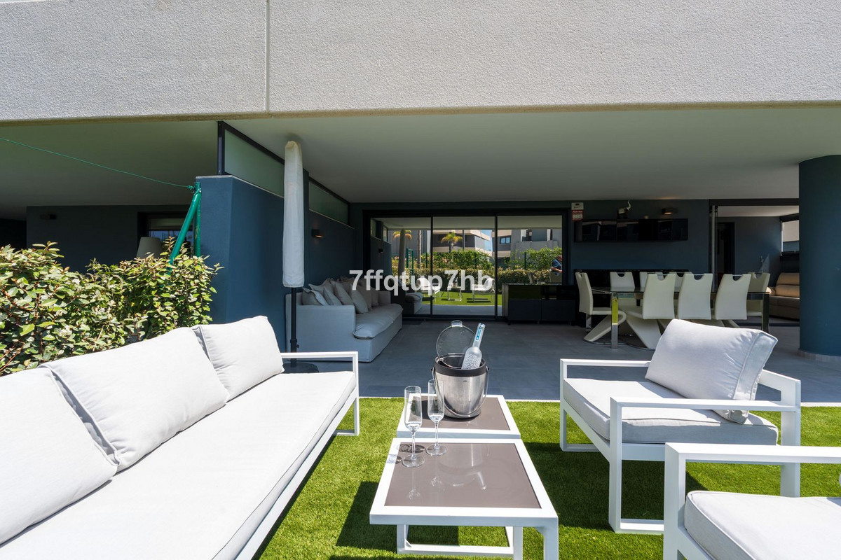 Cet appartement de trois chambres présente un design ouvert, intégrant harmonieusement une cuisine moderne entièrement équipée et le séjour. Il s'ouvre sur une spectaculaire terrasse exposée plein sud et un jardin privé de 80 m², idéal pour profiter du soleil infini qui caractérise la Costa del Sol.