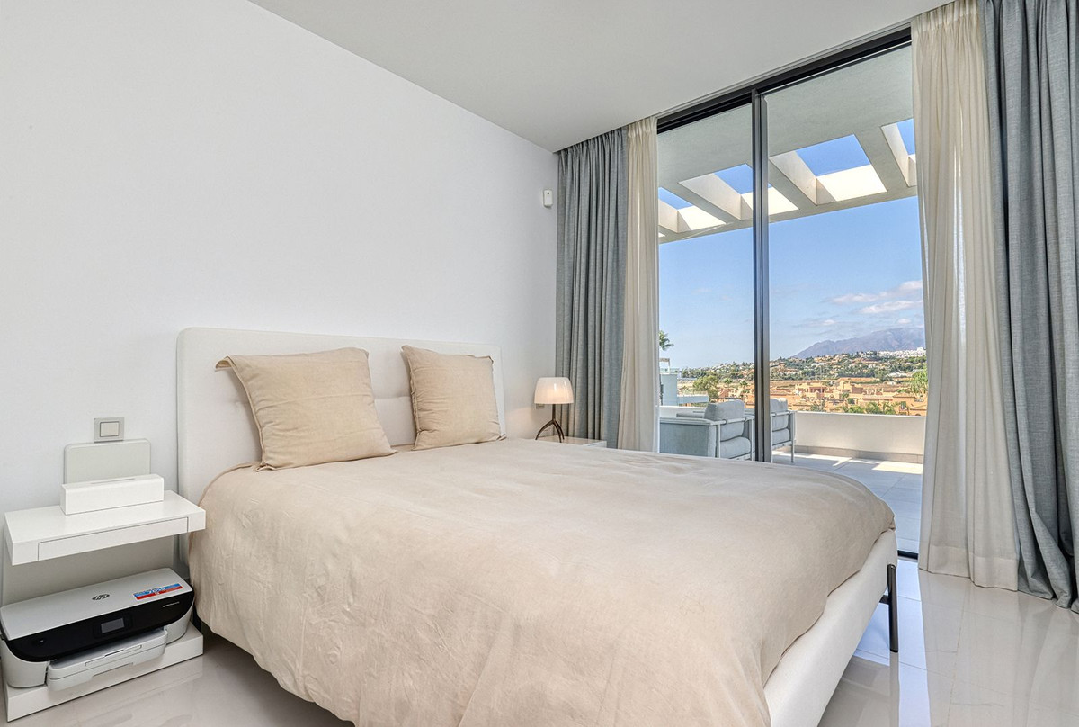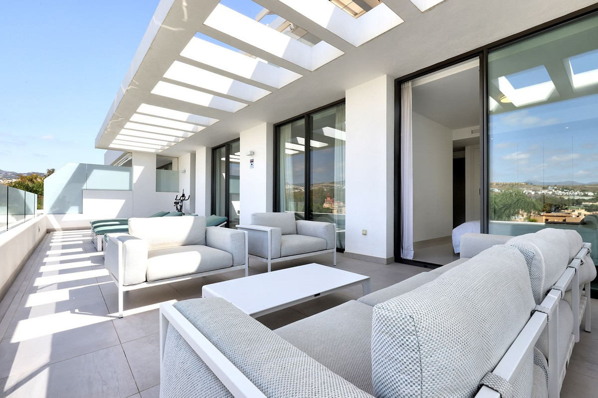 Luxueux appartement duplex de 4 chambres et 3 salles de bains, situé près de Benahavis. Situé au premier étage, il bénéficie d'un accès direct depuis l'entrée. Dès votre arrivée, vous serez immédiatement séduit par la vue magnifique et l'immense terrasse, véritable espace de vie extérieur. Séjour, cuisine ouverte, salle à manger, buanderie et toilettes invités. À ce niveau se trouve également une grande chambre double avec salle de bains attenante et nombreux rangements.