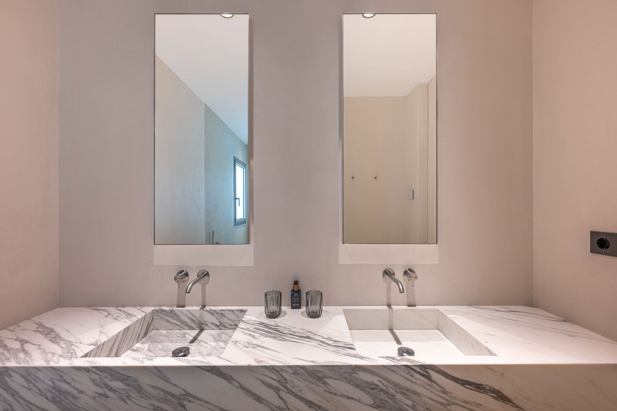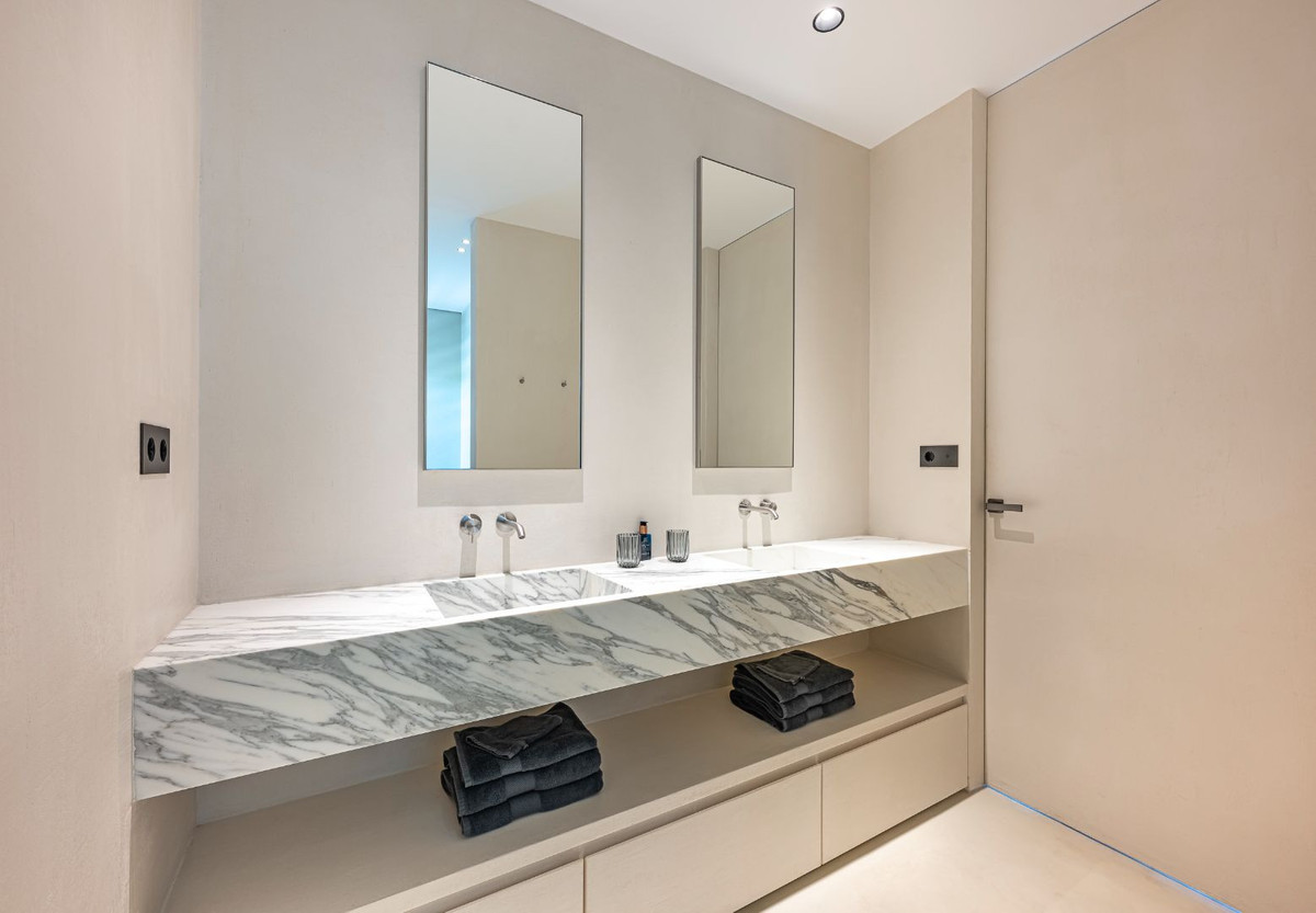 La cuisine a été conçue par la prestigieuse marque Bulthaup et les appareils électroménagers par les marques renommées Miele et Bora Dhu. Les salles de bains sont signées Villeroy & Boch.