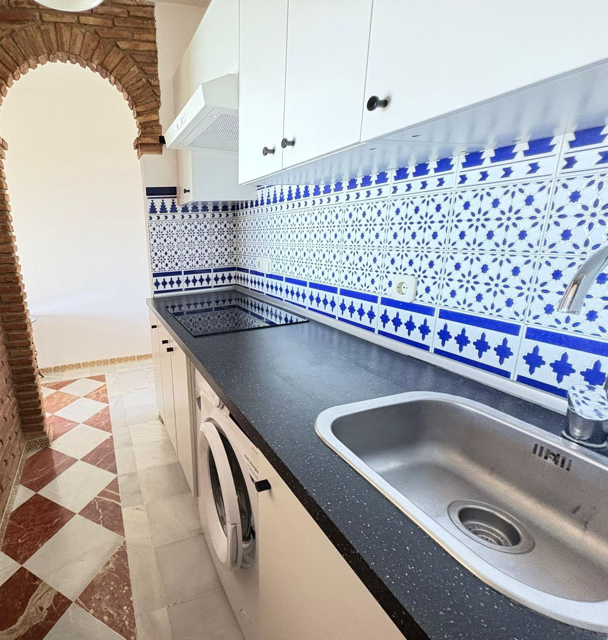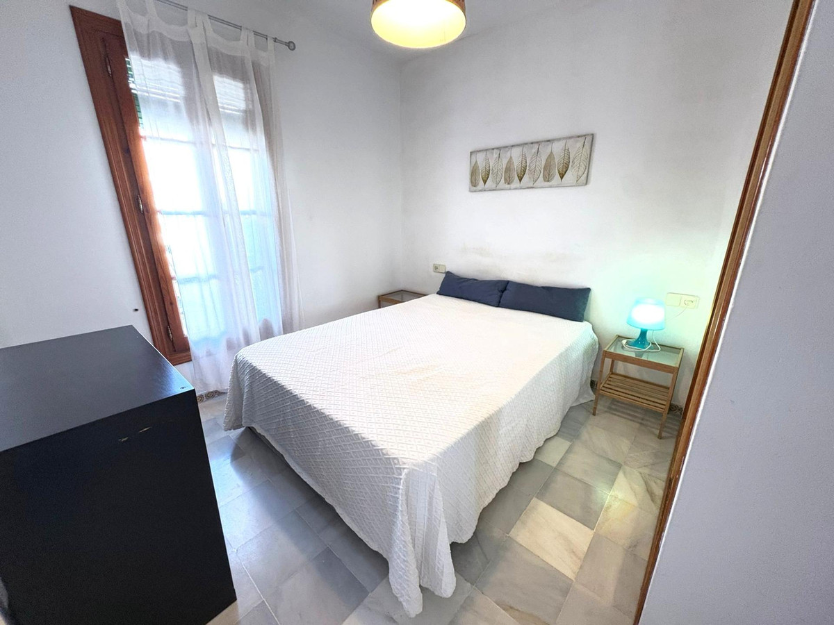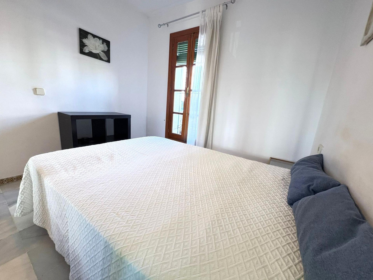 La propriété comprend une chambre spacieuse avec placards intégrés, une salle de bain complète ornée de carrelage andalou traditionnel et un agencement pensé pour optimiser chaque mètre carré. Le salon lumineux et accueillant, doté d'une cheminée, apporte chaleur et caractère, idéal pour des soirées conviviales. La cuisine ouverte, entièrement équipée, s'intègre harmonieusement à l'espace de vie, créant une atmosphère fonctionnelle et moderne tout en conservant une touche classique.