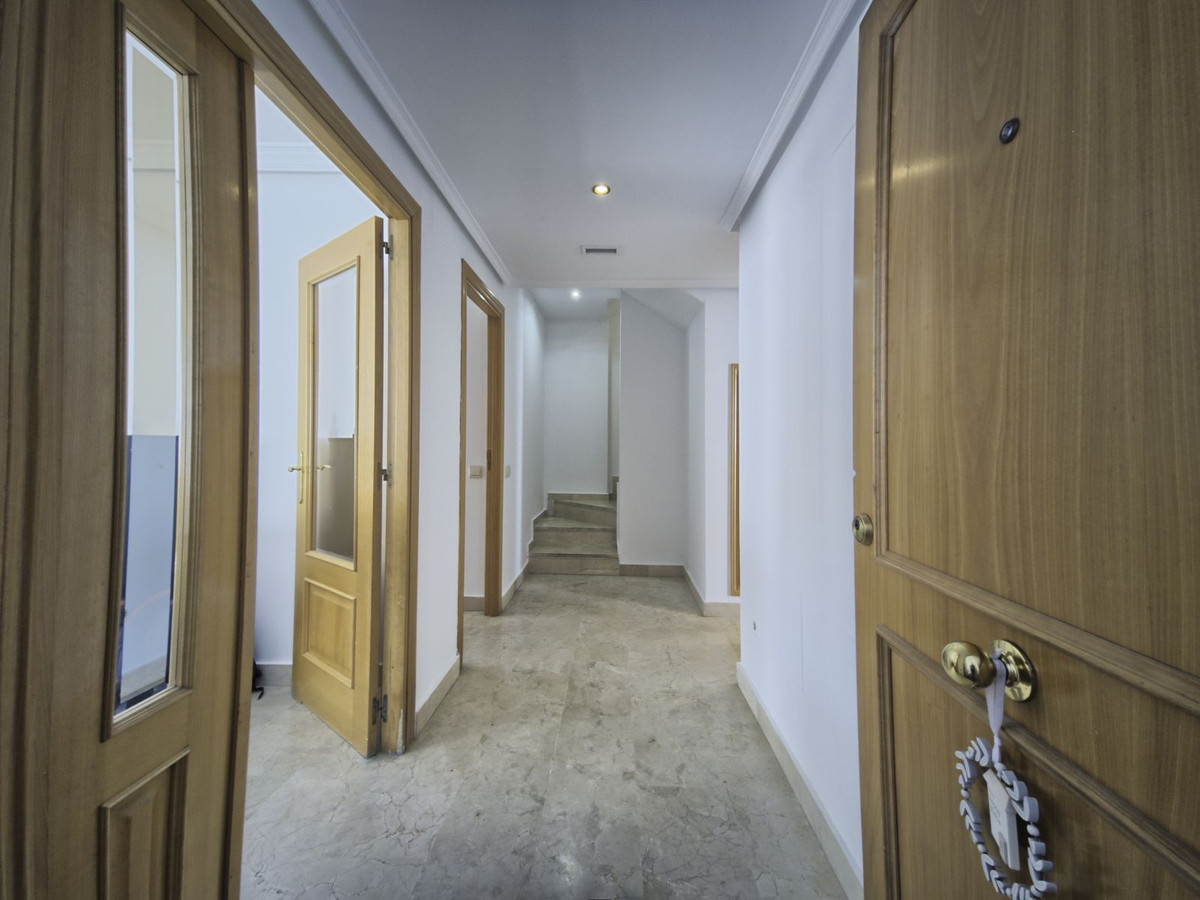 À l'étage, vous trouverez deux autres grandes chambres partageant un accès à une seconde terrasse privée, offrant ainsi un espace de vie extérieur encore plus grand. L'appartement est entièrement revêtu de marbre et comprend une place de parking souterrain privée et un cellier séparé.