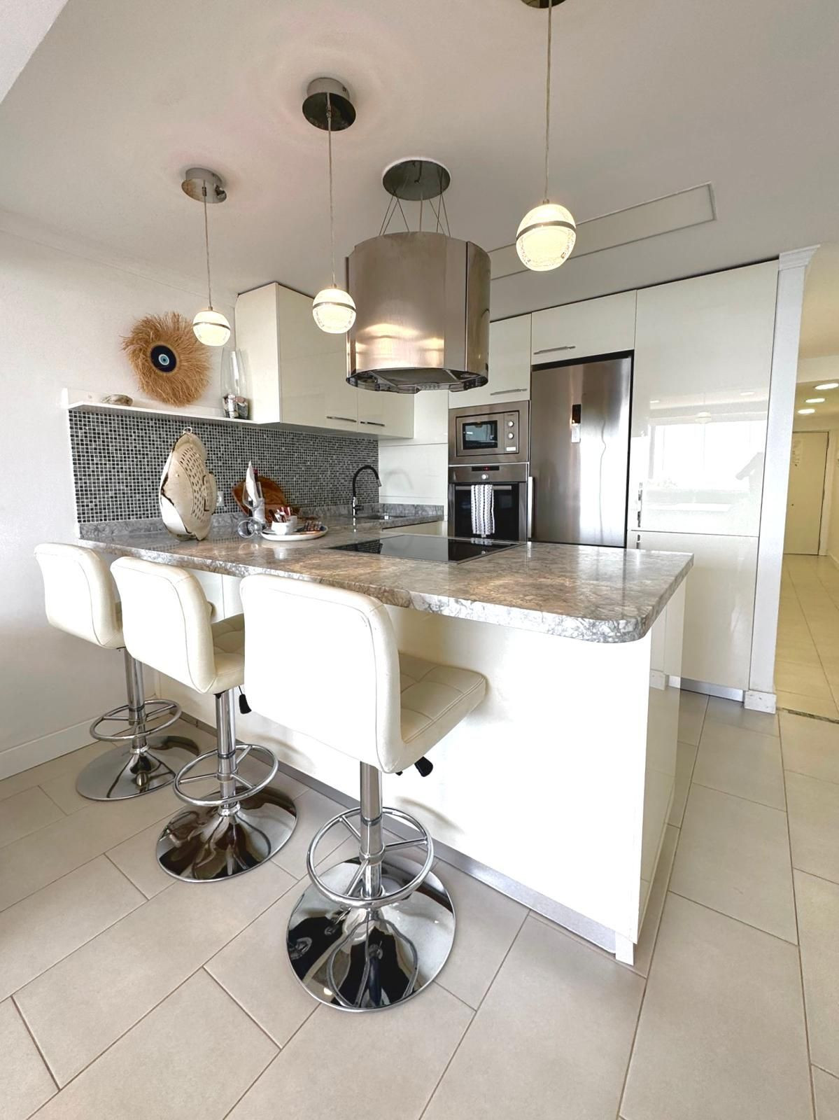 Offrant une vue panoramique sur la mer depuis le séjour, cet appartement magnifiquement rénové comprend une suite parentale, une salle de bain complète supplémentaire et un séjour chaleureux avec canapés-lits. La cuisine américaine ouverte s'intègre harmonieusement à l'espace, idéale pour des matinées relaxantes ou pour recevoir des amis.