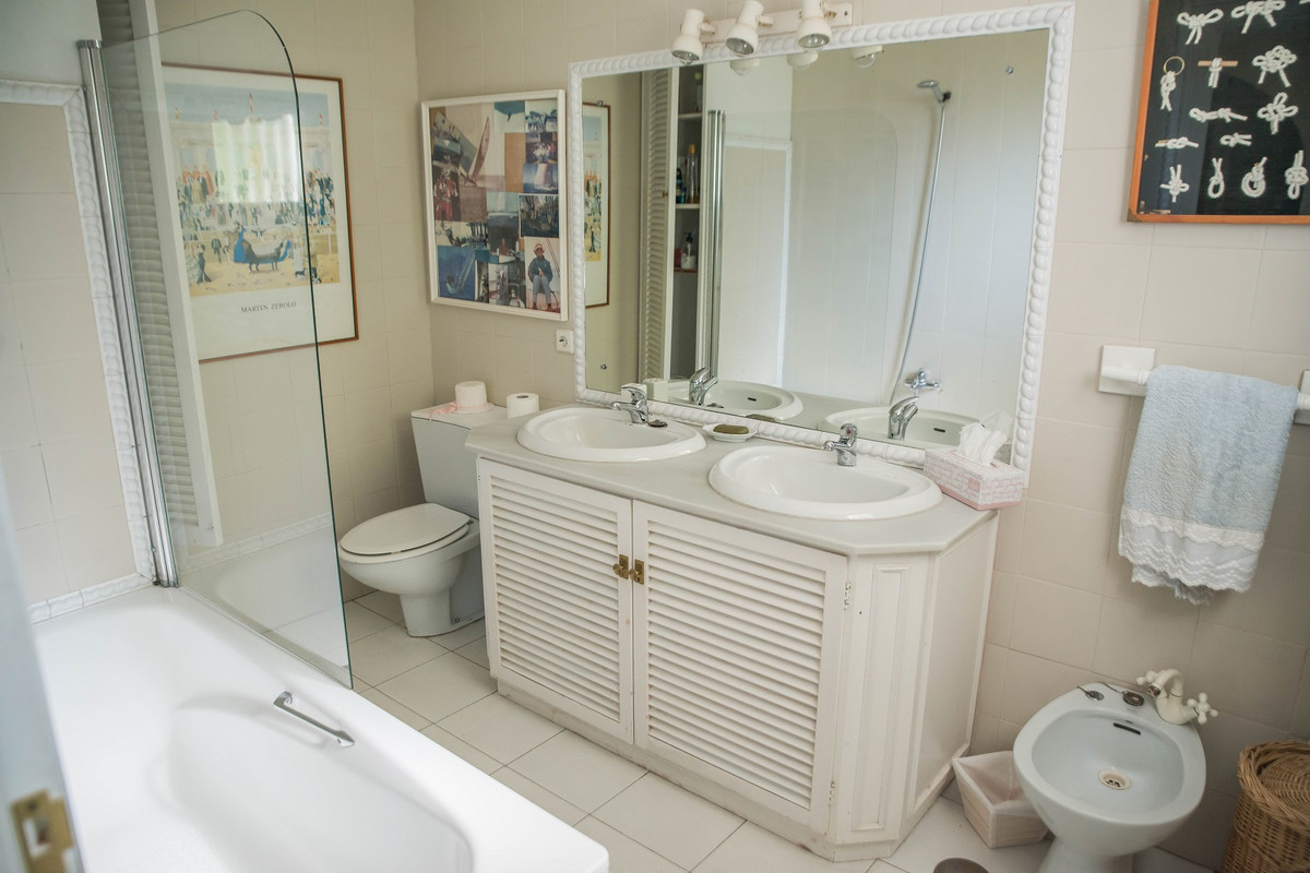 Au premier étage se trouve la chambre principale avec salle de bain attenante, comprenant également un salon et un dressing. Au même niveau se trouve une autre chambre avec salle de bain attenante. Les deux chambres ont accès à la terrasse.