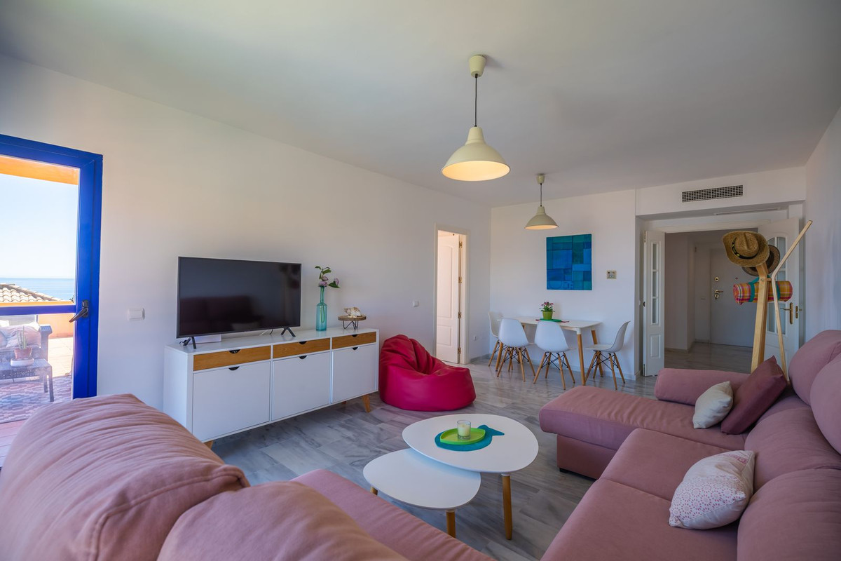 NOUVEAU SUR LE MARCHÉ, ce penthouse bénéficie d'un emplacement exceptionnel au sein d'un complexe résidentiel paisible et bien entretenu de la Costa del Sol, idéal pour ceux qui recherchent la tranquillité à proximité de la mer. Une agréable promenade permet d'accéder directement à la plage, à seulement 3 minutes à pied, vous permettant ainsi de profiter du littoral sans avoir besoin de voiture. Ce charmant penthouse de plain-pied comprend deux chambres, dont une avec salle de bains privative, une cuisine séparée et une buanderie. Il se distingue par sa luminosité, ses volumes et surtout par sa terrasse privée offrant une vue imprenable sur la mer et les montagnes : un cadre idéal pour se détendre et profiter de l'art de vivre méditerranéen. Grâce à son excellente orientation, la propriété bénéficie d'une lumière naturelle tout au long de la journée, créant une atmosphère chaleureuse et accueillante toute l'année. Situé dans une résidence soignée avec piscine commune, espaces verts et parking souterrain inclus dans le prix. Un bien offrant un excellent potentiel locatif, aussi bien pour des locations saisonnières que pour des séjours de longue durée, idéal également comme résidence principale ou secondaire. Une propriété hautement recommandée, prête à emménager et à profiter de tout ce que la Costa del Sol a à offrir.