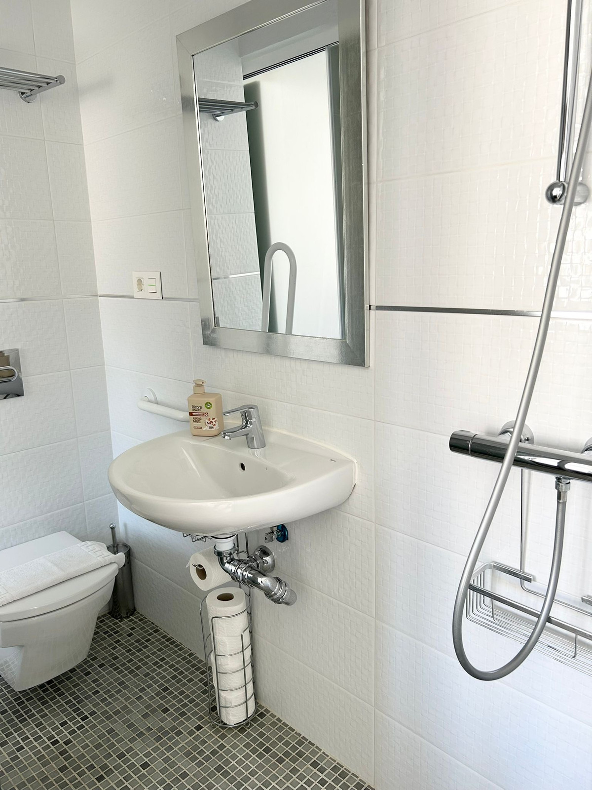 La maison dispose d'un parking privé, d'un ascenseur, du Wi-Fi dans toutes les pièces, ainsi que de la climatisation et de ventilateurs pour un confort optimal tout au long de l'année. Elle comprend une cuisine entièrement équipée, un élégant séjour, deux salles de bains design avec douche, un bain à remous et une télévision, ainsi que des toilettes invités.