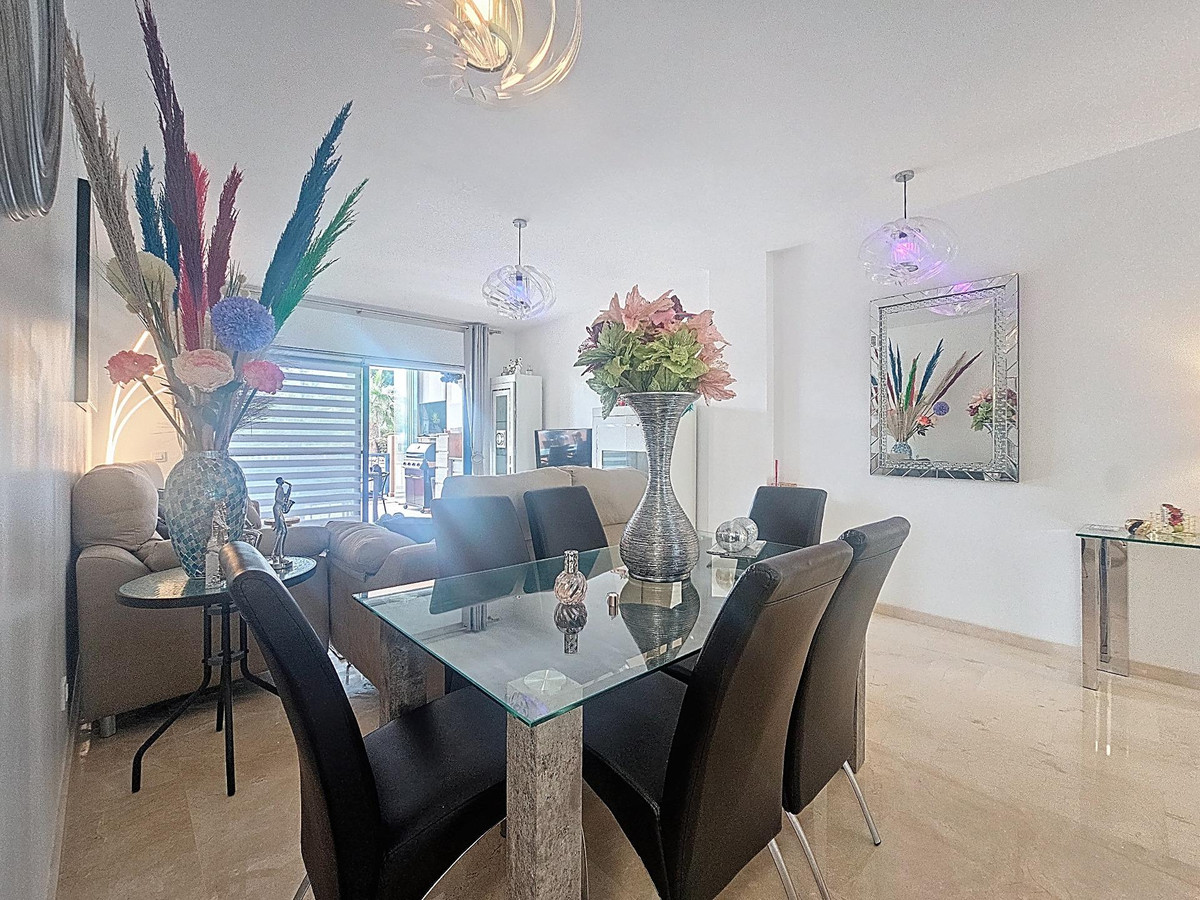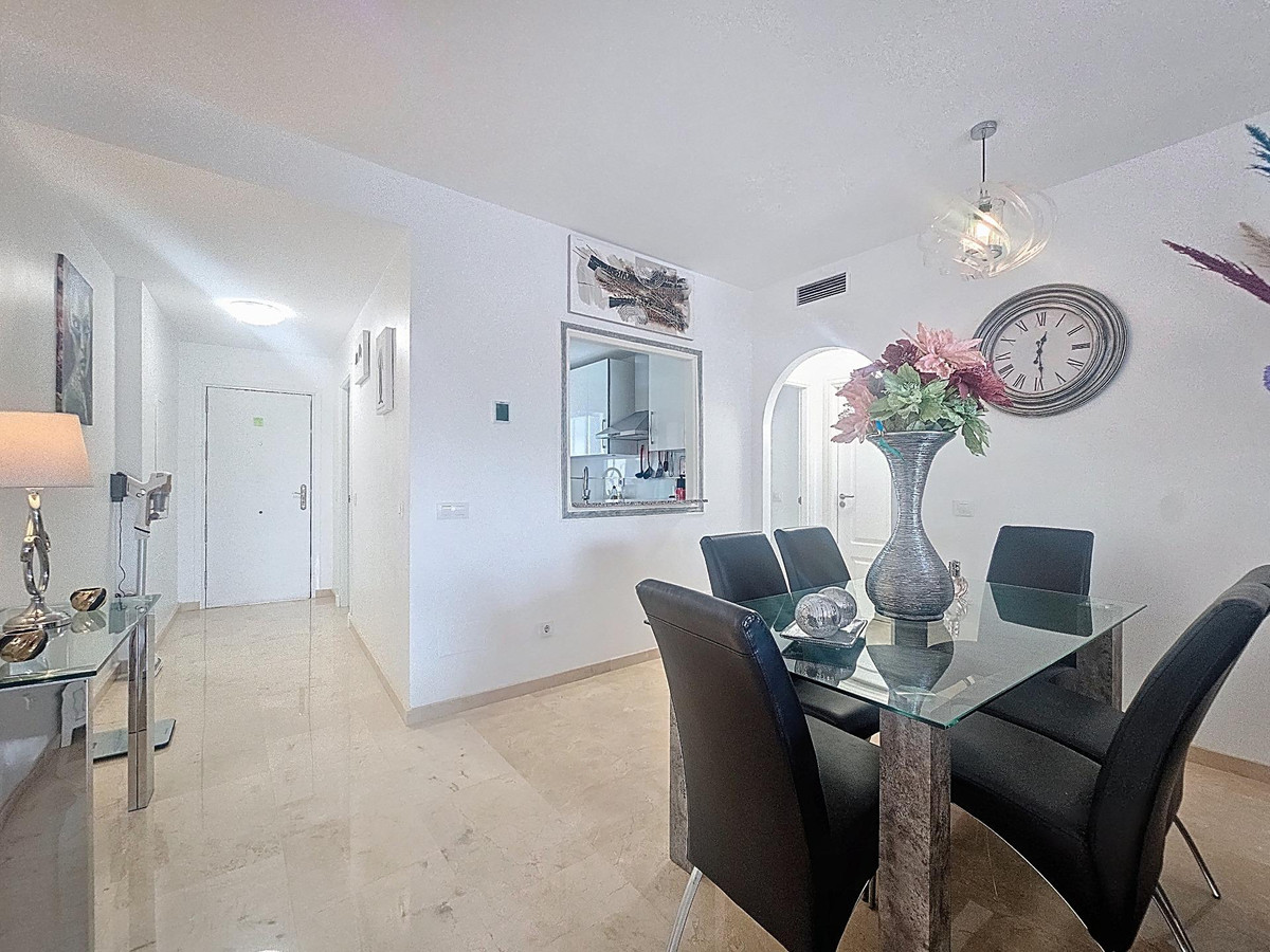 L'appartement comprend deux chambres confortables et deux salles de bains décorées avec goût. Le séjour spacieux et chaleureux s'ouvre sur une grande terrasse privée, idéale pour profiter de la douceur du climat de la Costa del Sol, partager des repas en plein air ou se détendre au calme.