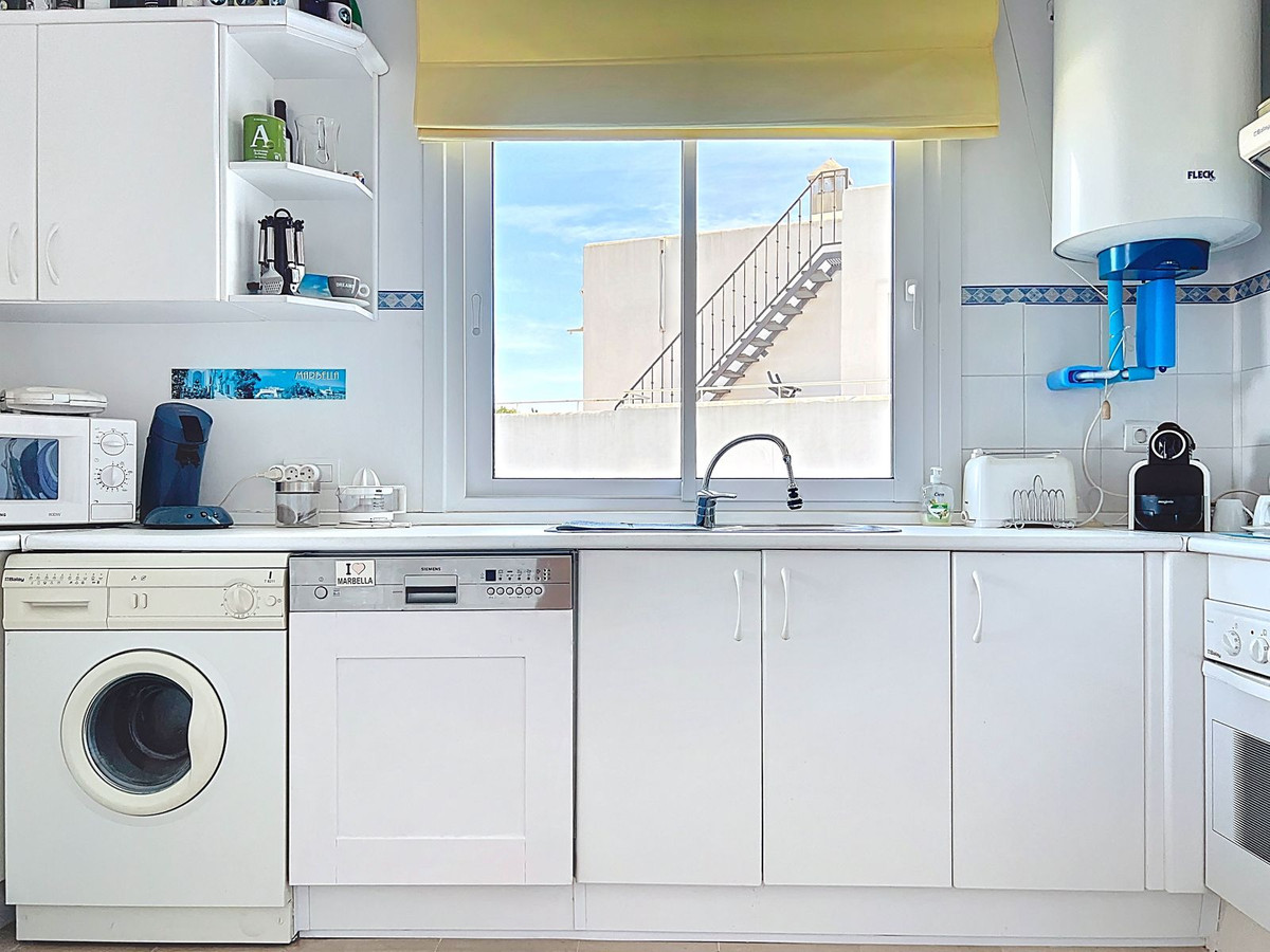 Malgré son emplacement paisible, l'appartement reste remarquablement proche des commodités du quotidien. En seulement 10 minutes en voiture, vous rejoindrez le centre commercial animé d'Elviria, où vous attendent restaurants raffinés, cafés, boutiques et les plus belles plages dorées de Marbella. L'aéroport international de Malaga est à seulement 40 minutes, garantissant un accès facile aux voyageurs fréquents.