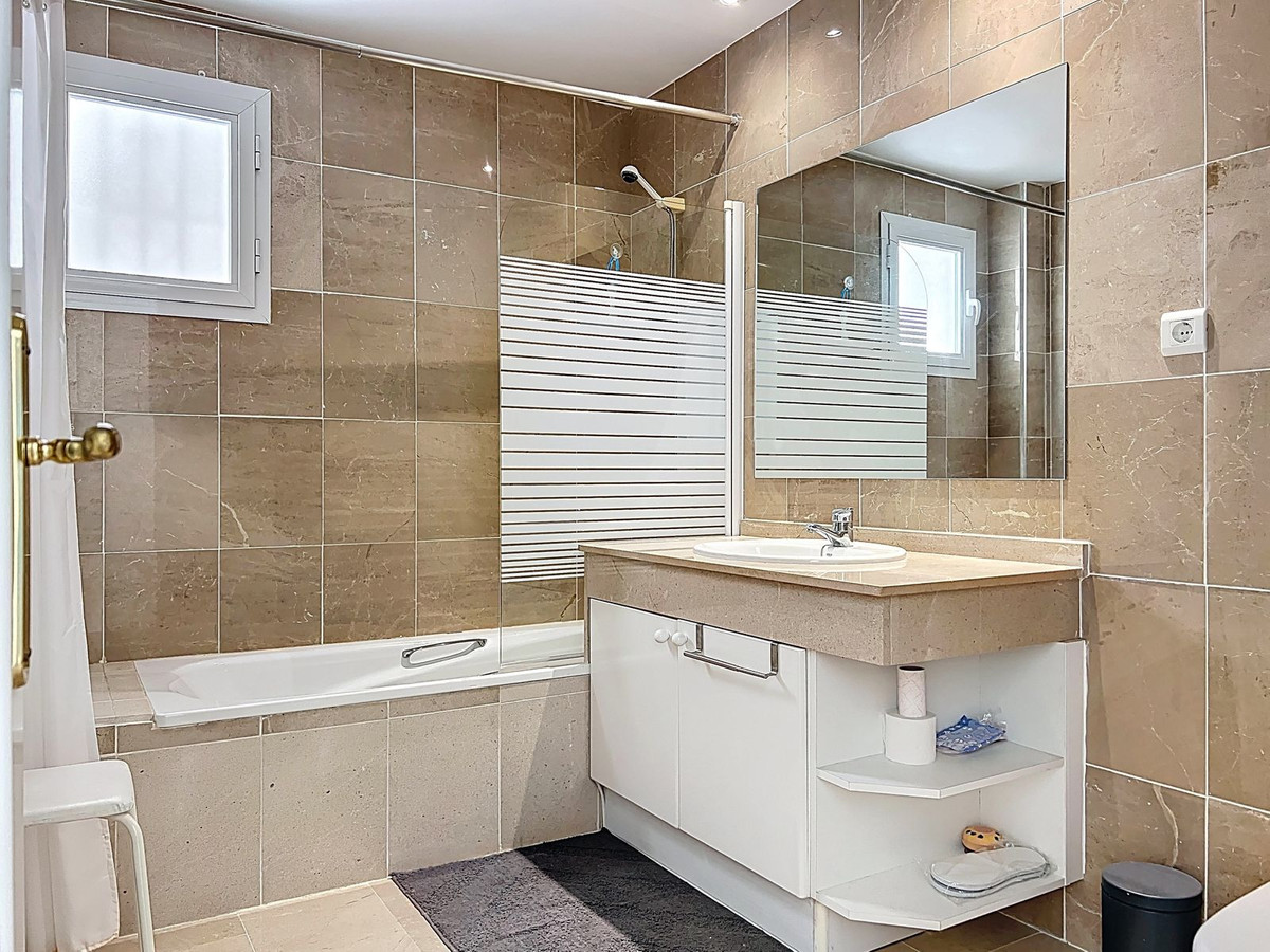 La cuisine semi-ouverte, soigneusement conçue et dotée d'un passe-plat pratique, allie fonctionnalité et charme, idéale pour recevoir tout en restant en contact avec la salle à manger. Les deux chambres, aux dimensions généreuses, disposent d'élégantes salles de bains attenantes, garantissant confort et intimité aux résidents comme aux invités.