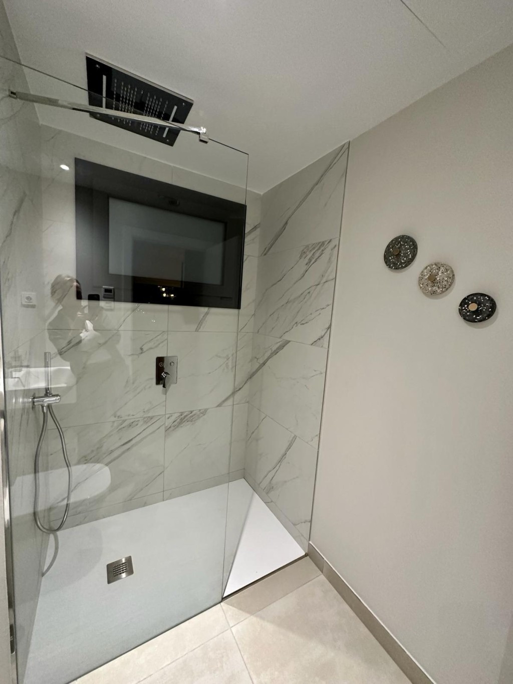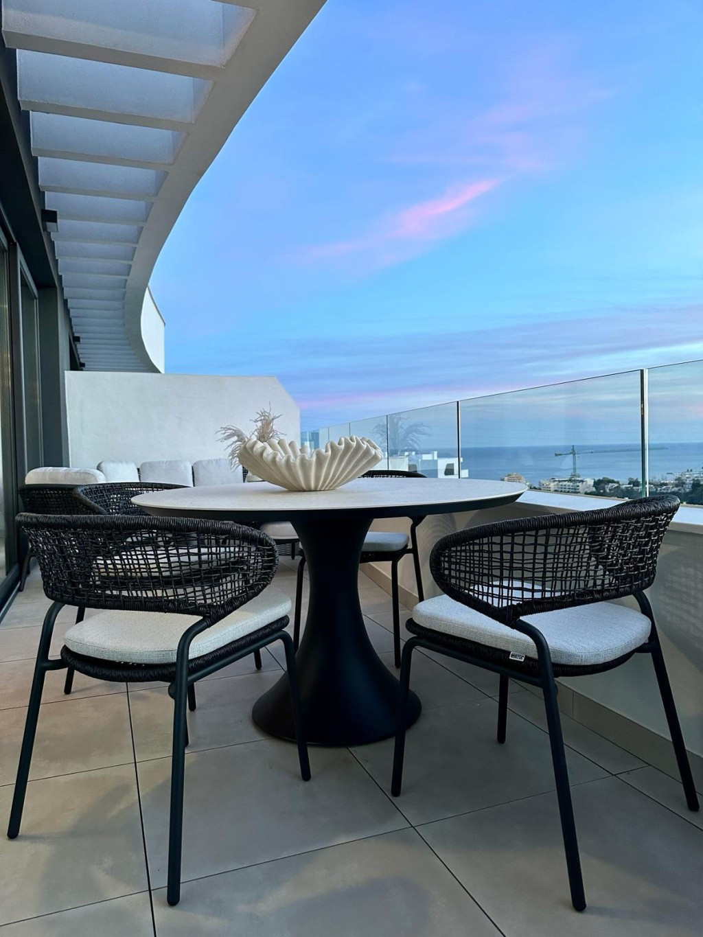 Penthouse neuf de style moderne à El Higueron, Fuengirola. Il comprend deux chambres, une salle de bain, une cuisine ouverte, un salon et une superbe terrasse avec vue panoramique sur la mer. Vendu meublé avec des meubles de qualité, il comprend une place de parking extérieure, une place de parking souterraine et un débarras. Climatisation réversible par aérothermie, stores électriques dans le salon, variateurs d'intensité dans toutes les pièces, connexion TV et internet dans le salon et les chambres, chauffage au sol, carrelage spécial et douche à effet pluie dans la salle de bain. Résidence sécurisée avec piscines et commodités. La plage est à 15 minutes à pied.