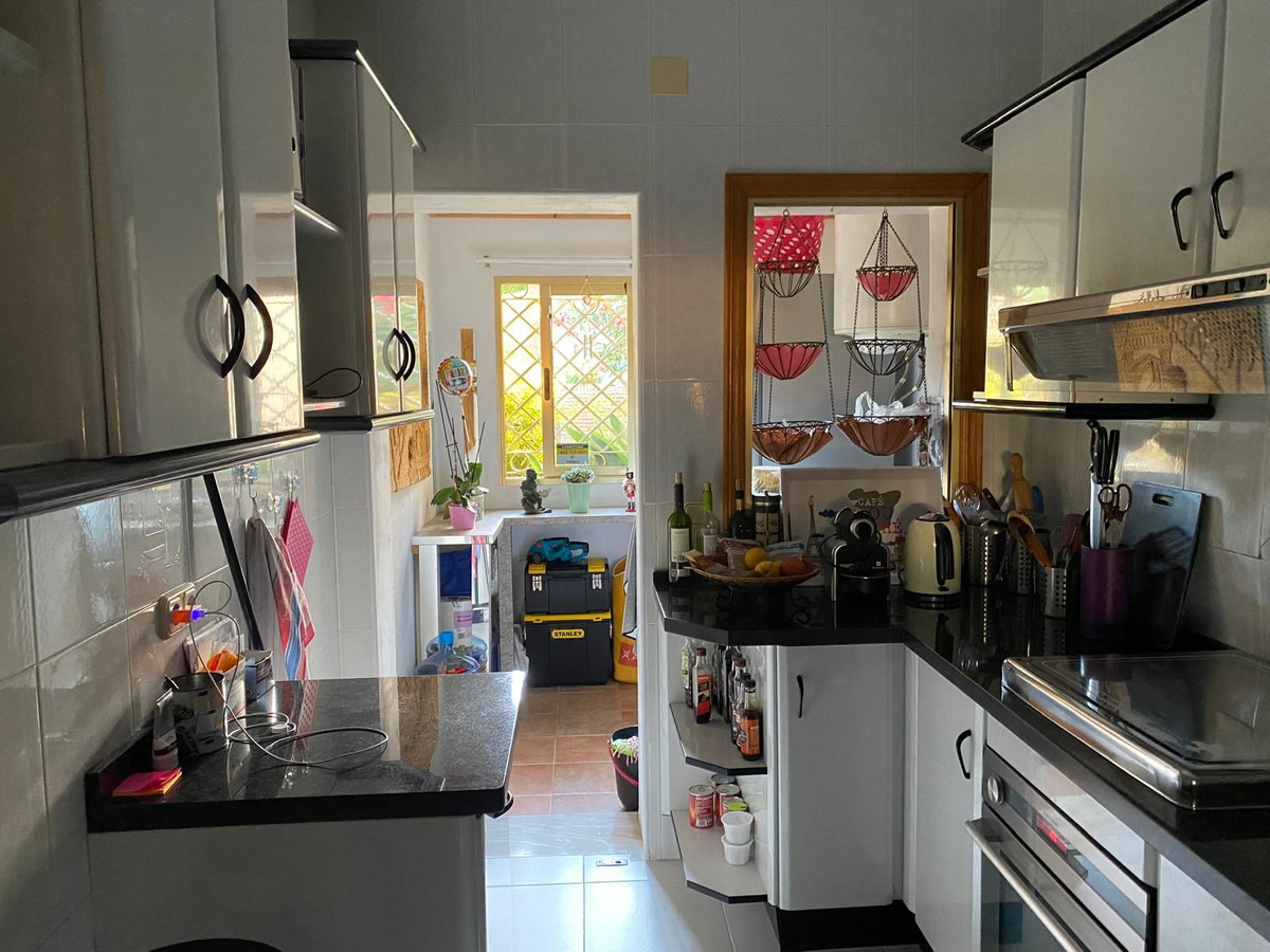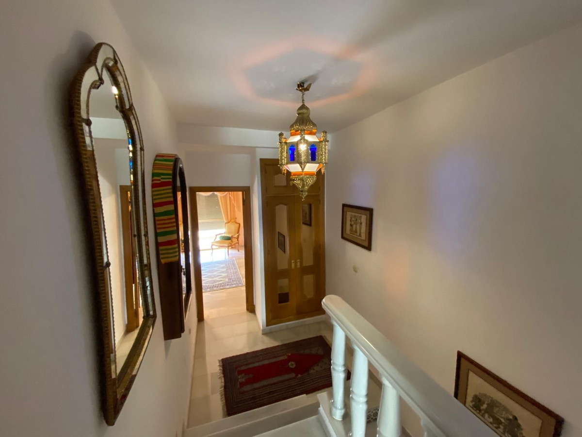Fantastique maison jumelée à TORREQUEBRADA, dans le meilleur quartier de Benalmádena, au sein d'un lotissement résidentiel. Avant d'entrer, vous découvrirez un charmant petit jardin où vous pourrez bronzer l'après-midi. En entrant, vous accéderez au spacieux salon, orné d'une cheminée en marbre qui apporte style et chaleur, idéal pour des moments de détente. Il est relié à la cuisine entièrement équipée par un passe-plat et une buanderie avec fenêtre. Des toilettes se trouvent également au rez-de-chaussée. Lumineuse grâce à son exposition est-ouest (soleil du matin et de l'après-midi), cette maison est équipée de la climatisation et d'une pompe à chaleur. Le salon donne accès à une terrasse couverte et communique avec une autre terrasse accessible par un escalier, où vous pourrez vous détendre, bronzer et profiter de barbecues en famille ou entre amis. À l'étage supérieur, vous trouverez deux chambres extérieures. La chambre principale est très spacieuse, avec sa salle de bain attenante, ses placards intégrés et sa terrasse offrant une magnifique vue panoramique. La deuxième chambre est également spacieuse et dispose d'une salle de bain attenante. Le terrain communautaire, fermé par un portail automatique, offre un parking pour plusieurs voitures. La résidence comprend une grande piscine commune (semi-olympique, ouverte toute l'année), des pelouses et des jardins tropicaux. Le jardinier s'occupe de l'entretien des jardins privés et communs, dont la consommation d'eau est incluse dans les charges mensuelles de la résidence. La résidence est située dans un quartier résidentiel calme et bien desservi. Idéal pour les amateurs de golf, elle est à proximité immédiate de l'un des meilleurs parcours de la Costa del Sol (TORREQUEBRADA GOLF). Torrequebrada abrite plusieurs écoles et hôpitaux, et se trouve à seulement 2 km des plages et des supermarchés de la région. VISITES RECOMMANDÉES !