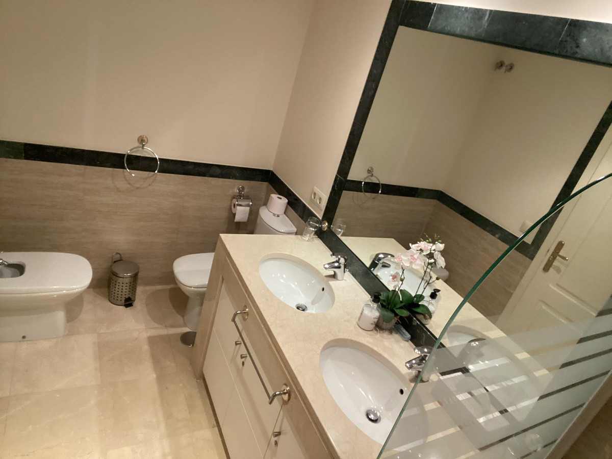 Magnifique et spacieux appartement de deux chambres au premier étage à La Quinta, Benahavis, à seulement 10 minutes en voiture de Puerto Banús. Le salon/salle à manger donne directement sur une terrasse spacieuse et lumineuse avec salon de jardin pour profiter du plein air. La chambre principale dispose d'une salle de bains attenante, et la chambre principale et la chambre d'amis disposent de nombreux rangements. Entièrement rénové avec goût, le bien dispose de rangements supplémentaires dans les deux salles de bains et d'un plan de travail supplémentaire dans la cuisine.