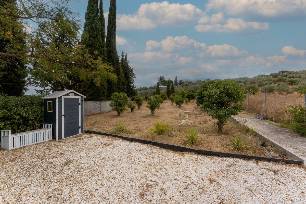 La propriété est située sur un terrain plat d'un peu plus de 4 400 m², dont une partie entoure la maison, tandis qu'une autre parcelle, plus petite, se trouve de l'autre côté du chemin. Cet espace indépendant est planté d'environ 40 oliviers et 40 orangers, apportant une touche andalouse authentique. La parcelle principale est entièrement clôturée, garantissant intimité et sécurité.