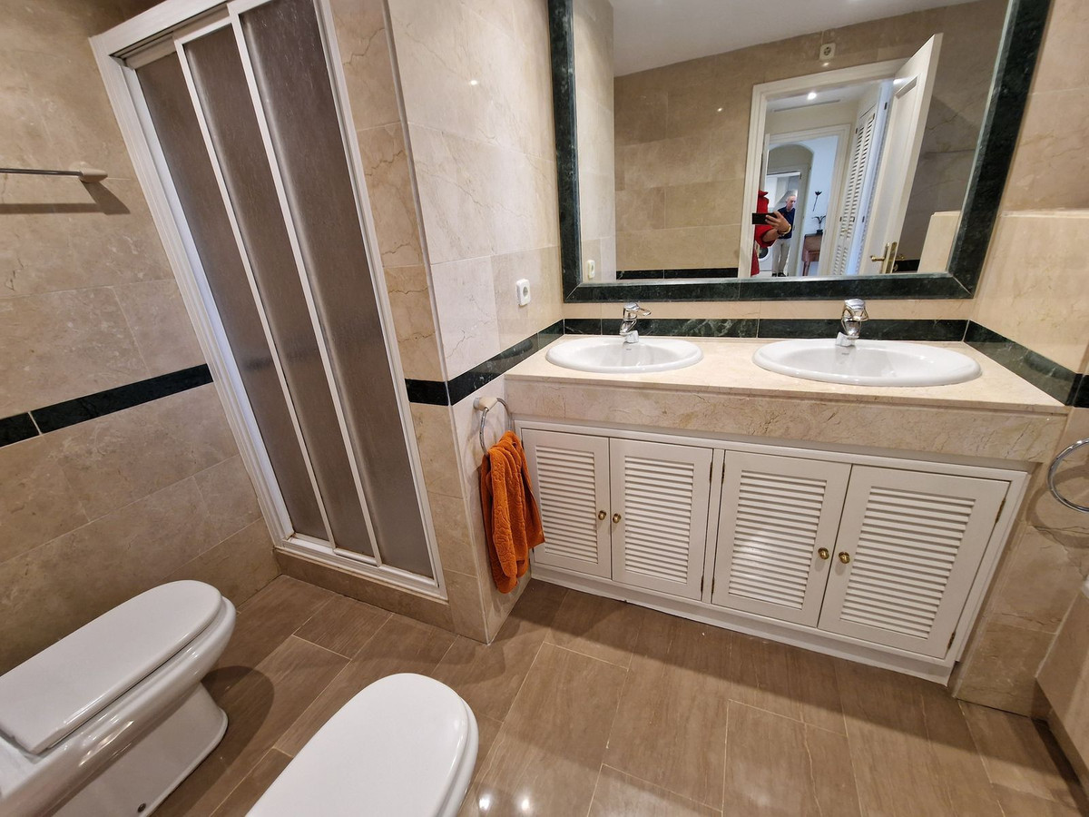 L'appartement a une surface habitable spacieuse de 137m2 plus 30m2 de terrasse, il se compose d'un hall d'entrée, cuisine entièrement équipée, 2 chambres, 2 salles de bains (salle de bain principale avec douche et baignoire, une salle de bain avec douche), salon salle à manger et une grande terrasse donnant sur les jardins et la piscine de l'urbanisation, orientée sud. L'urbanisation propose également des courts de paddle-tennis et des caméras de sécurité. Vendu avec 2 places de garage et 3 débarras.