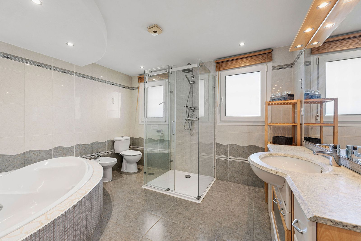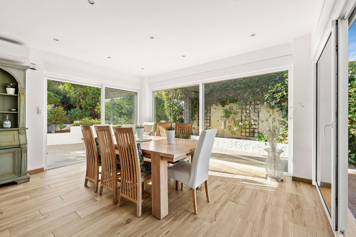 La maison dispose de plusieurs espaces extérieurs pour les repas et la détente. Au bord de la piscine, vous trouverez un bar et un grand coin salon pour les belles journées d'été. Le jardin supérieur bénéficie d'un grand espace repas extérieur avec barbecue et cuisine d'été.