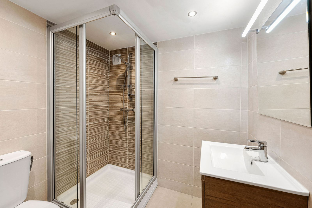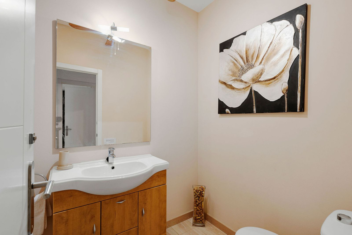Au rez-de-chaussée, vous trouverez un autre salon et une salle à manger donnant sur la partie inférieure de la terrasse et de la piscine. Vous y trouverez deux chambres d'amis spacieuses et une autre chambre sans fenêtre, appelée chambre d'amis. Ces deux chambres d'amis et demie partagent également une belle salle de bain. Vous trouverez également une autre cuisine et une entrée indépendante, ce qui permet de créer un espace indépendant.