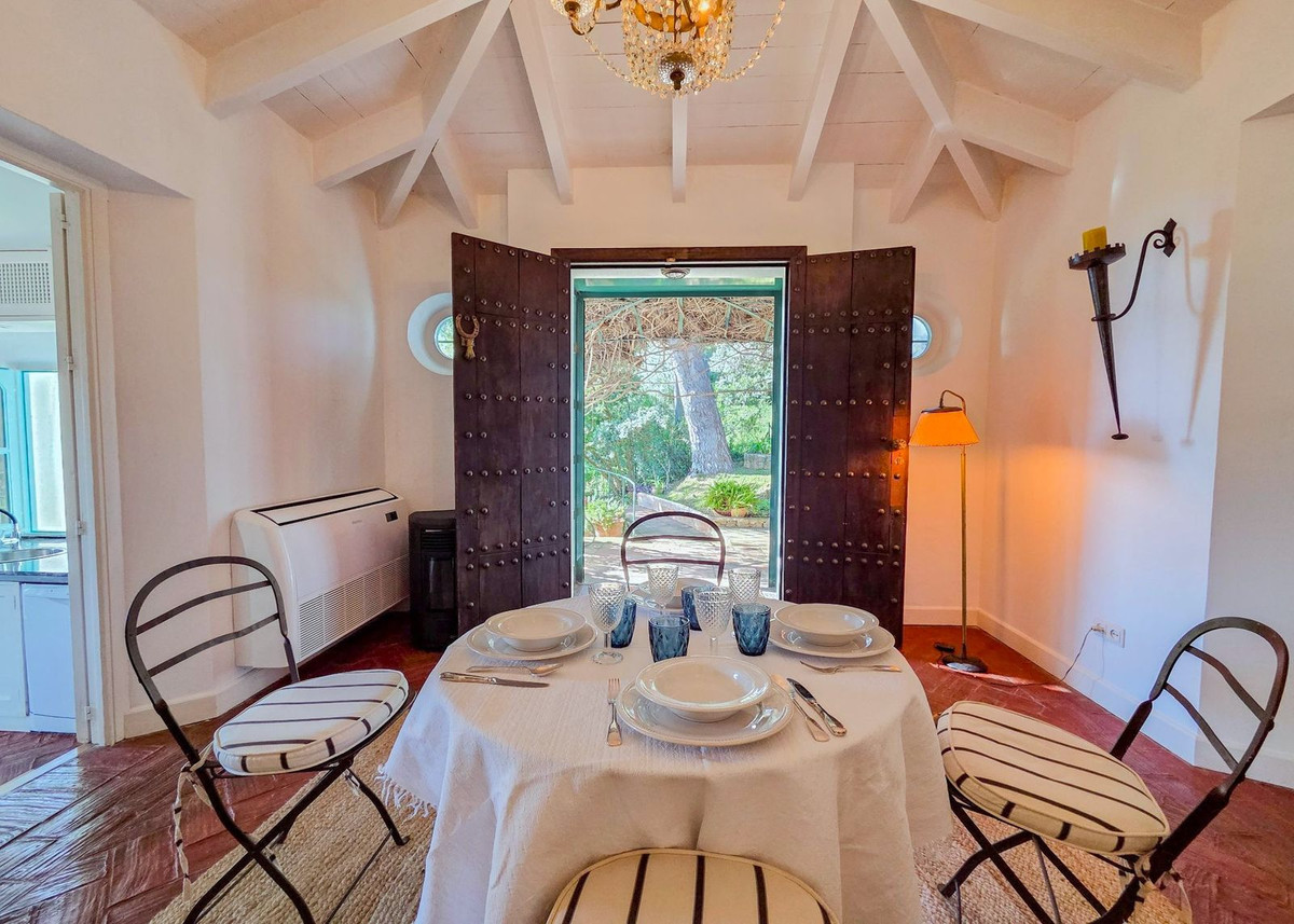 Au cœur de la maison se trouve sa charmante cour centrale, véritable sanctuaire extérieur. Des pergolas ornées de plantes grimpantes créent un espace repas d'été ombragé, idéal pour des soirées mémorables, tandis qu'un coin salon confortable près de la fontaine vous invite à la détente et aux sons apaisants de la nature.