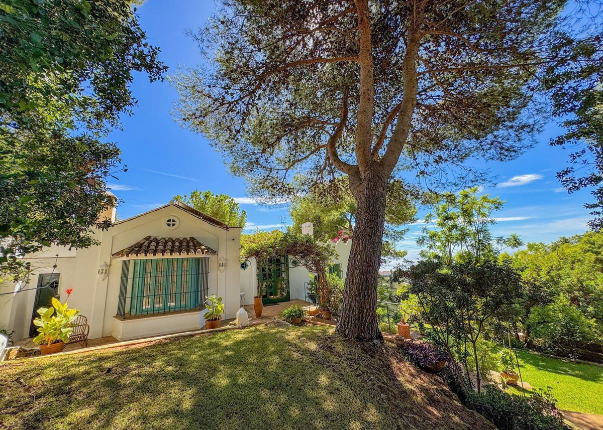 Située au milieu de pins parfumés dans le prestigieux quartier de Montúa, juste au-dessus de Marbella, au pied de la majestueuse montagne La Concha, cette charmante villa de style cortijo de plain-pied allie parfaitement le caractère andalou traditionnel au confort moderne.