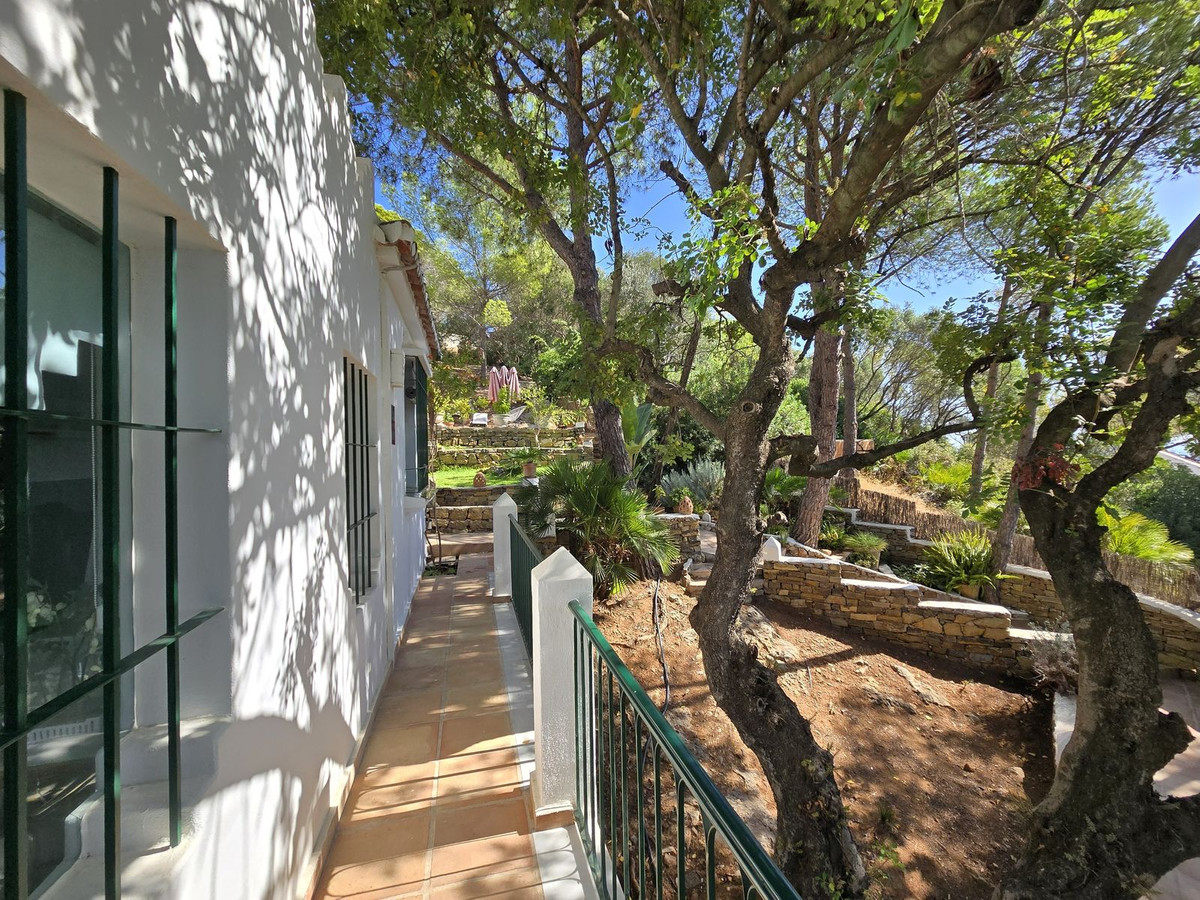 La piscine de la villa, véritable joyau, offre une vue imprenable sur la mer, qui s'étend jusqu'à Gibraltar et les lointaines côtes marocaines. Entourée de caroubiers matures, elle vous invite à la détente dans sa beauté sereine, tandis que le salon d'été adjacent vous promet des moments inoubliables de détente et de divertissement en plein air.