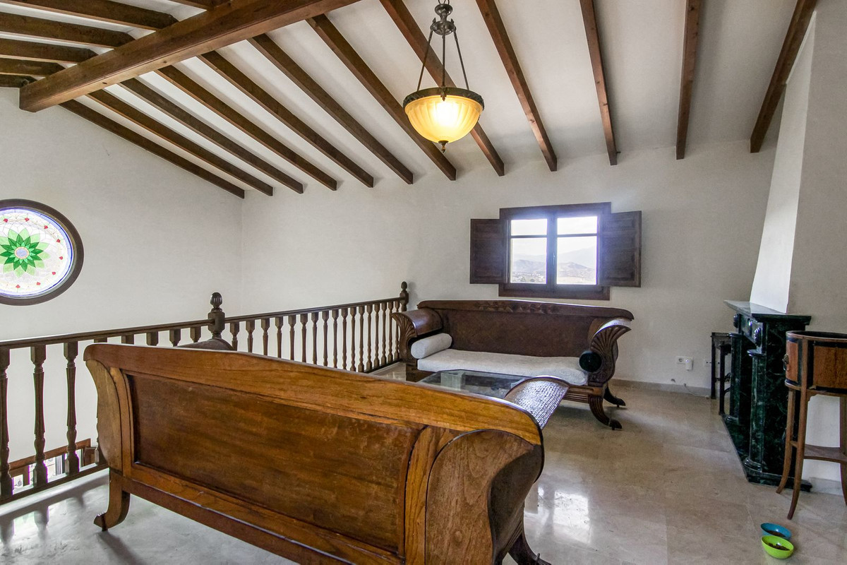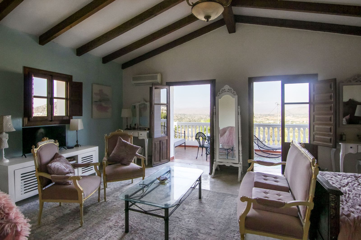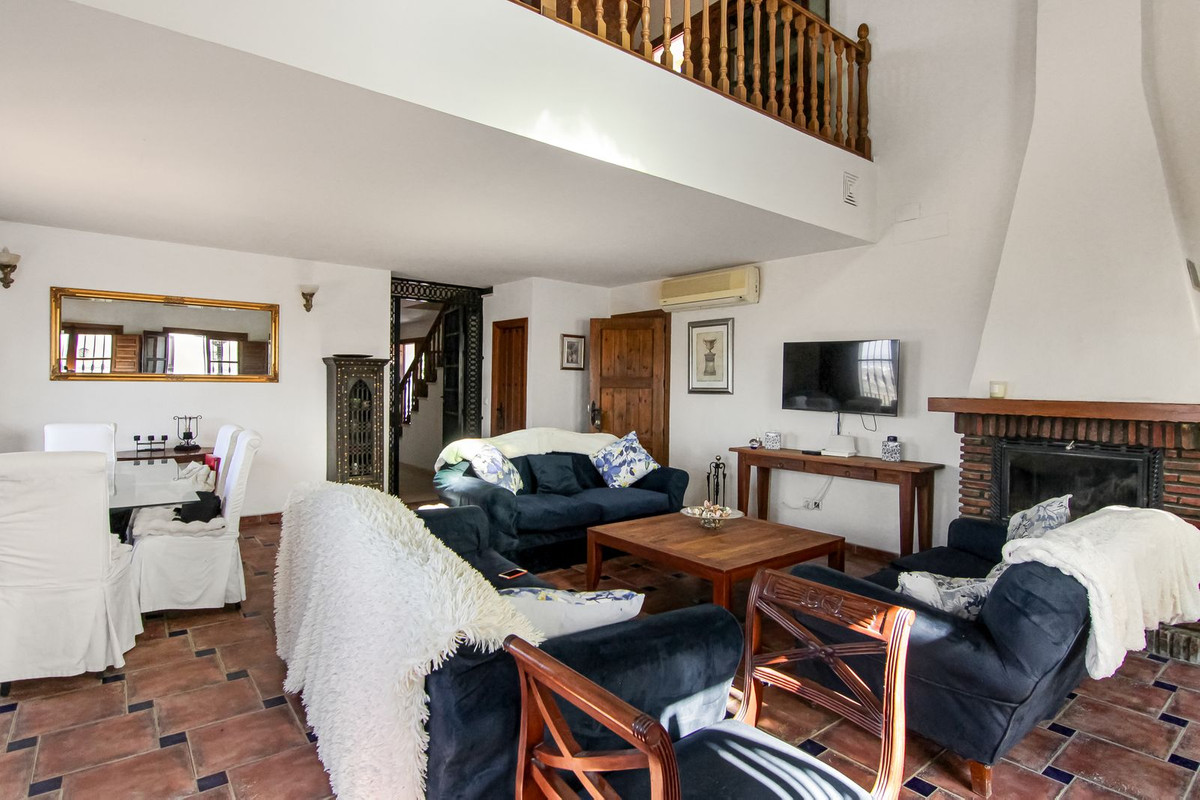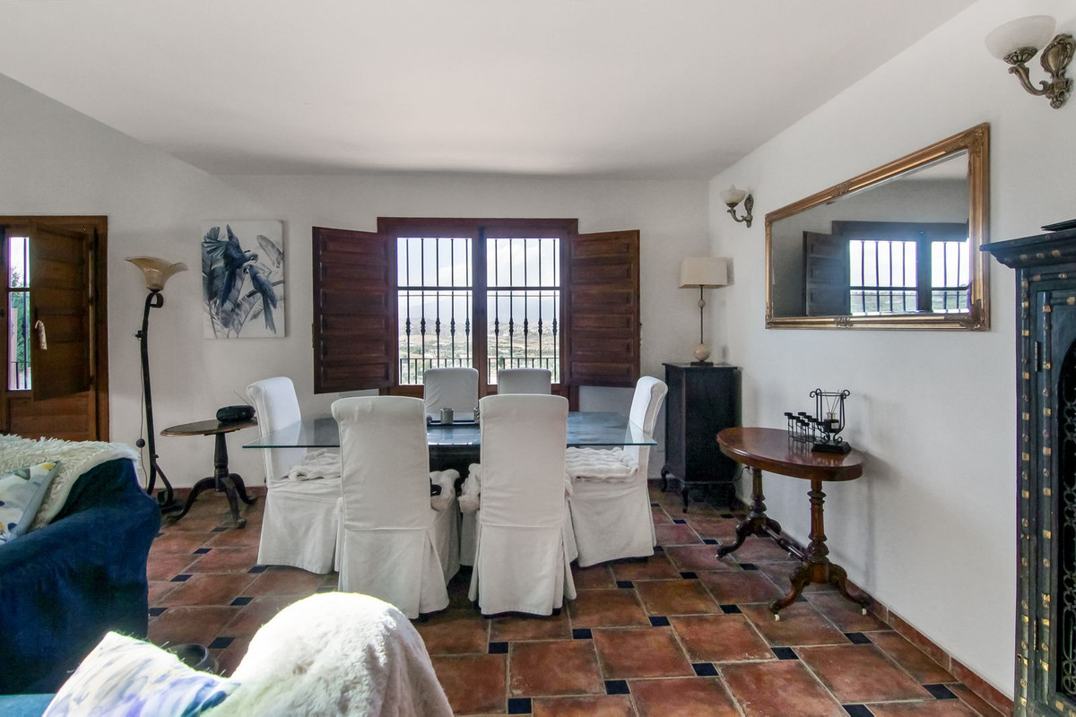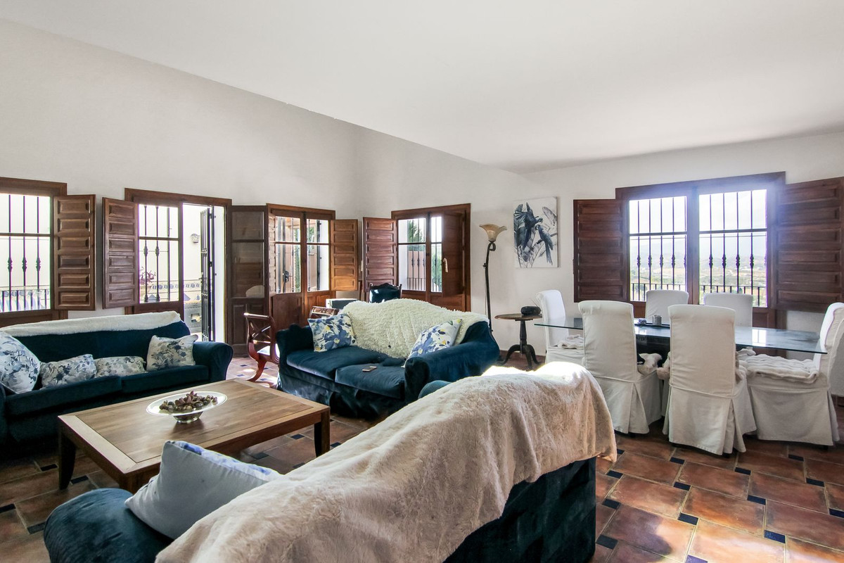 Le salon est à couper le souffle, très spacieux, avec de hauts plafonds et une grande cheminée. De belles fenêtres à cadre en bois de style rustique et des volets intérieurs offrent une vue sur la campagne. Il est baigné de lumière naturelle et donne accès au patio andalou, d'où l'on accède à la terrasse. Il est possible d'aménager une piscine. De nombreuses possibilités s'offrent à vous.