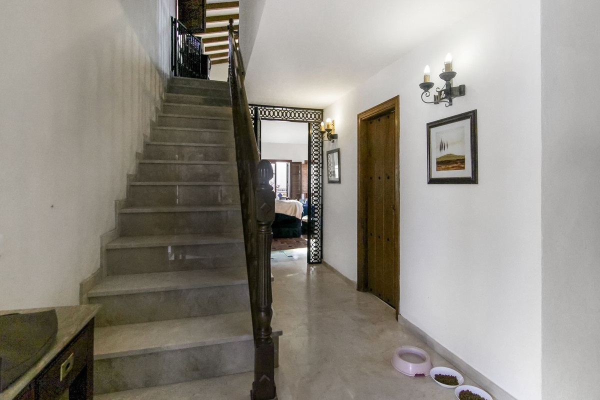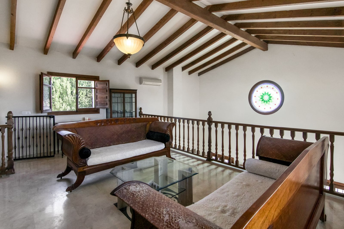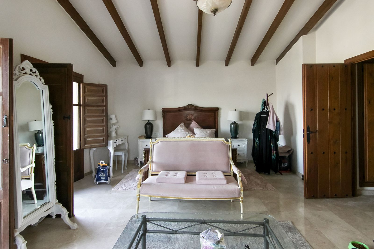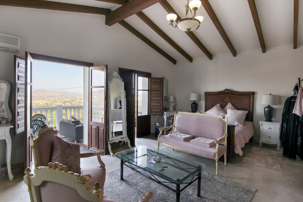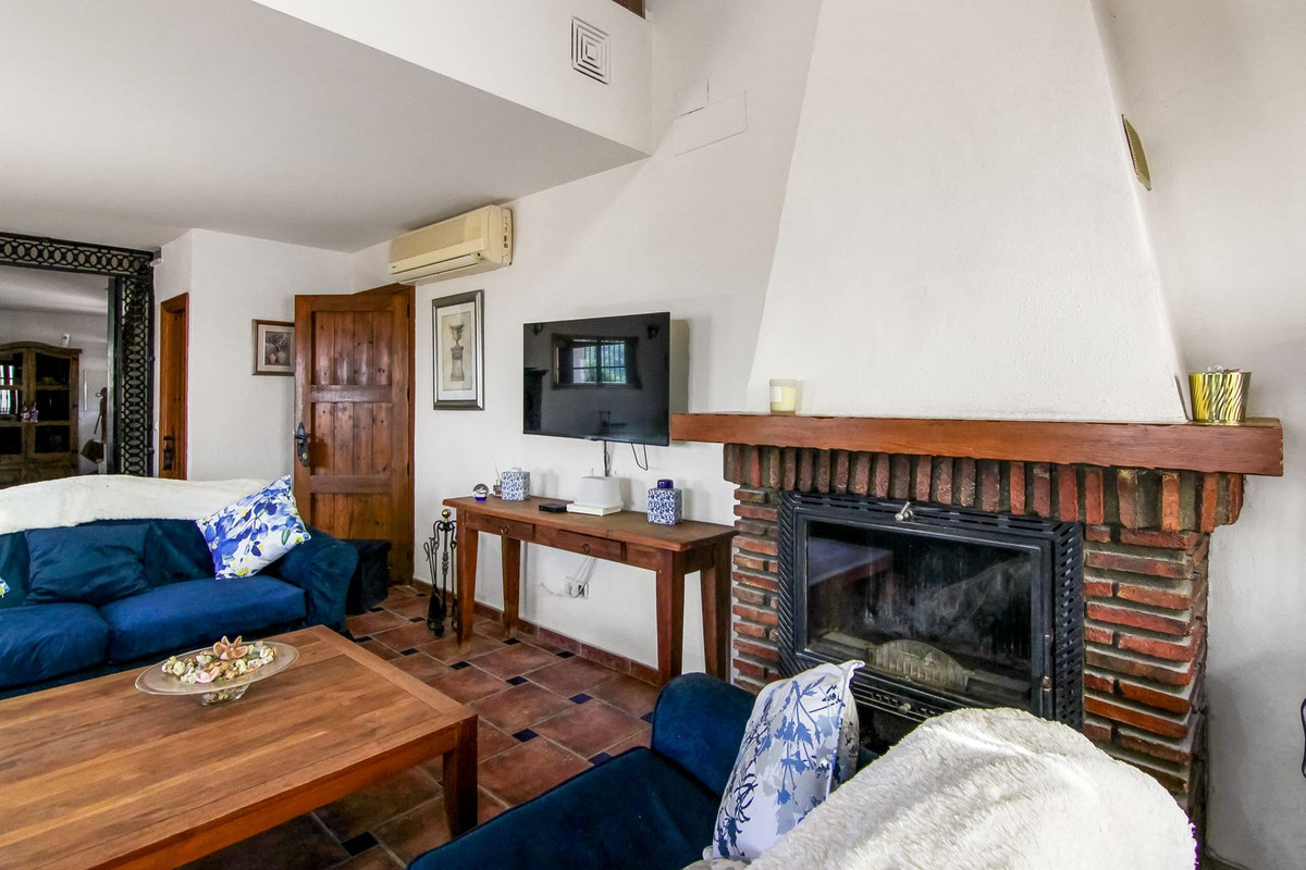 Le salon est à couper le souffle, très spacieux, avec de hauts plafonds et une grande cheminée. De belles fenêtres à cadre en bois de style rustique et des volets intérieurs offrent une vue sur la campagne. Il est baigné de lumière naturelle et donne accès au patio andalou, d'où l'on accède à la terrasse. Il est possible d'aménager une piscine. De nombreuses possibilités s'offrent à vous.