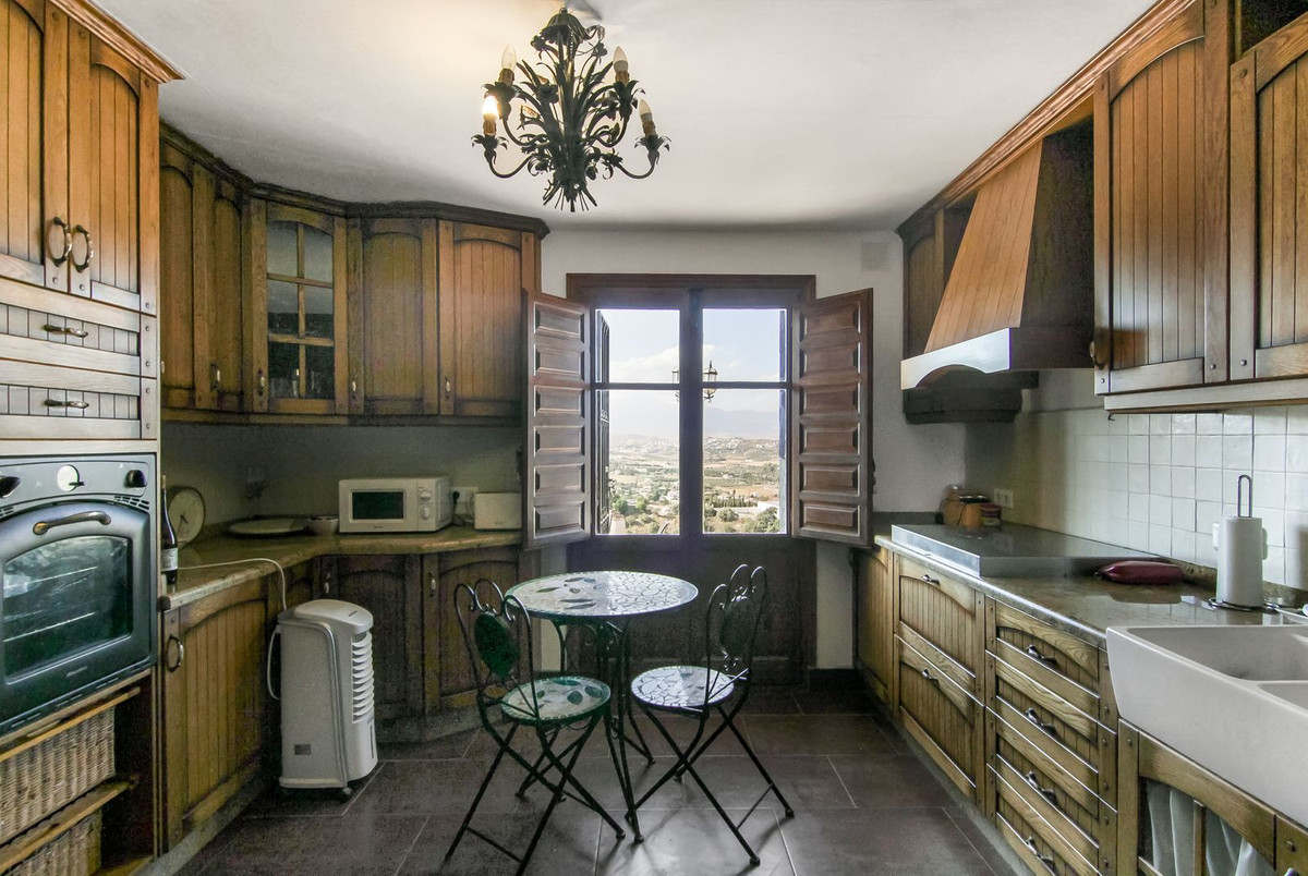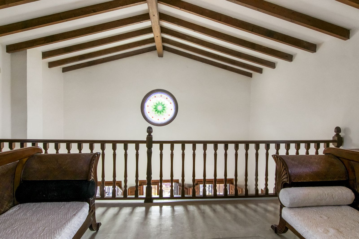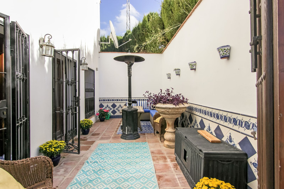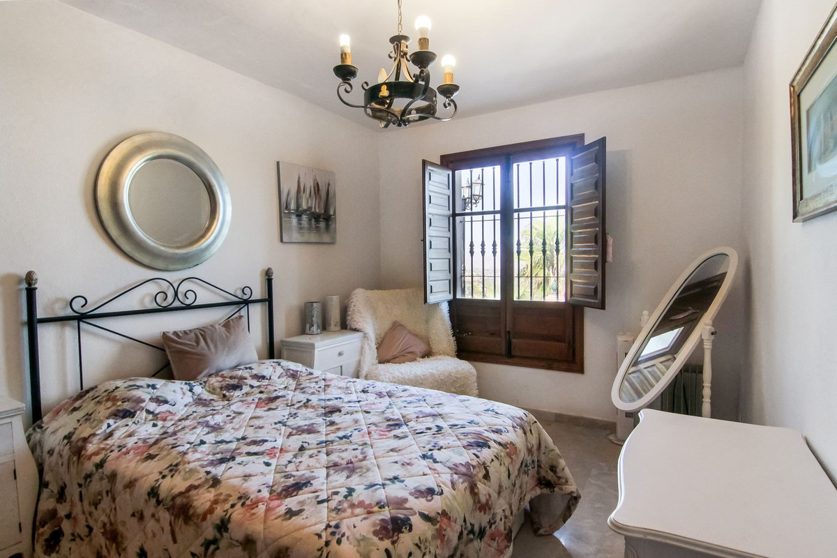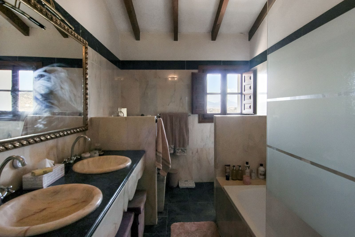 Le salon est à couper le souffle, très spacieux, avec de hauts plafonds et une grande cheminée. De belles fenêtres à cadre en bois de style rustique et des volets intérieurs offrent une vue sur la campagne. Il est baigné de lumière naturelle et donne accès au patio andalou, d'où l'on accède à la terrasse. Il est possible d'aménager une piscine. De nombreuses possibilités s'offrent à vous.
