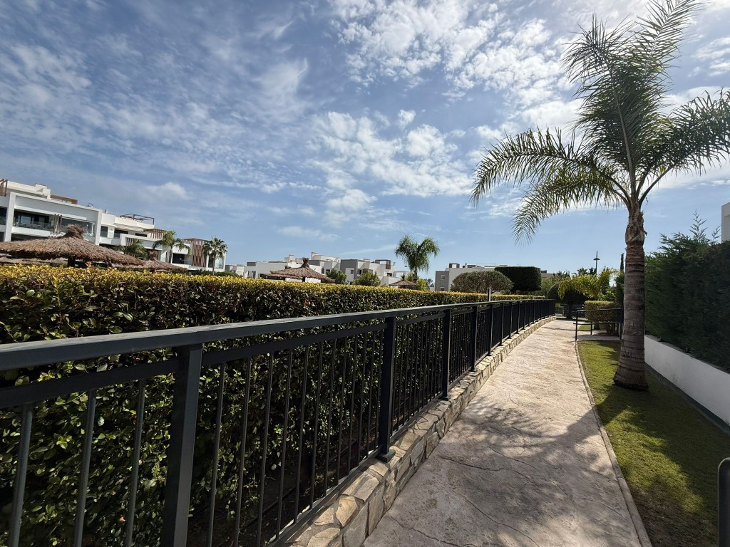 Magnifique appartement de 2 chambres et 2 salles de bain au rez-de-chaussée, avec grand jardin privé et deux terrasses, à Cancelada. En parfait état. Parking souterrain et cave inclus dans le prix. Magnifique jardin commun avec piscine. À quelques pas des commerces et de la plage.
