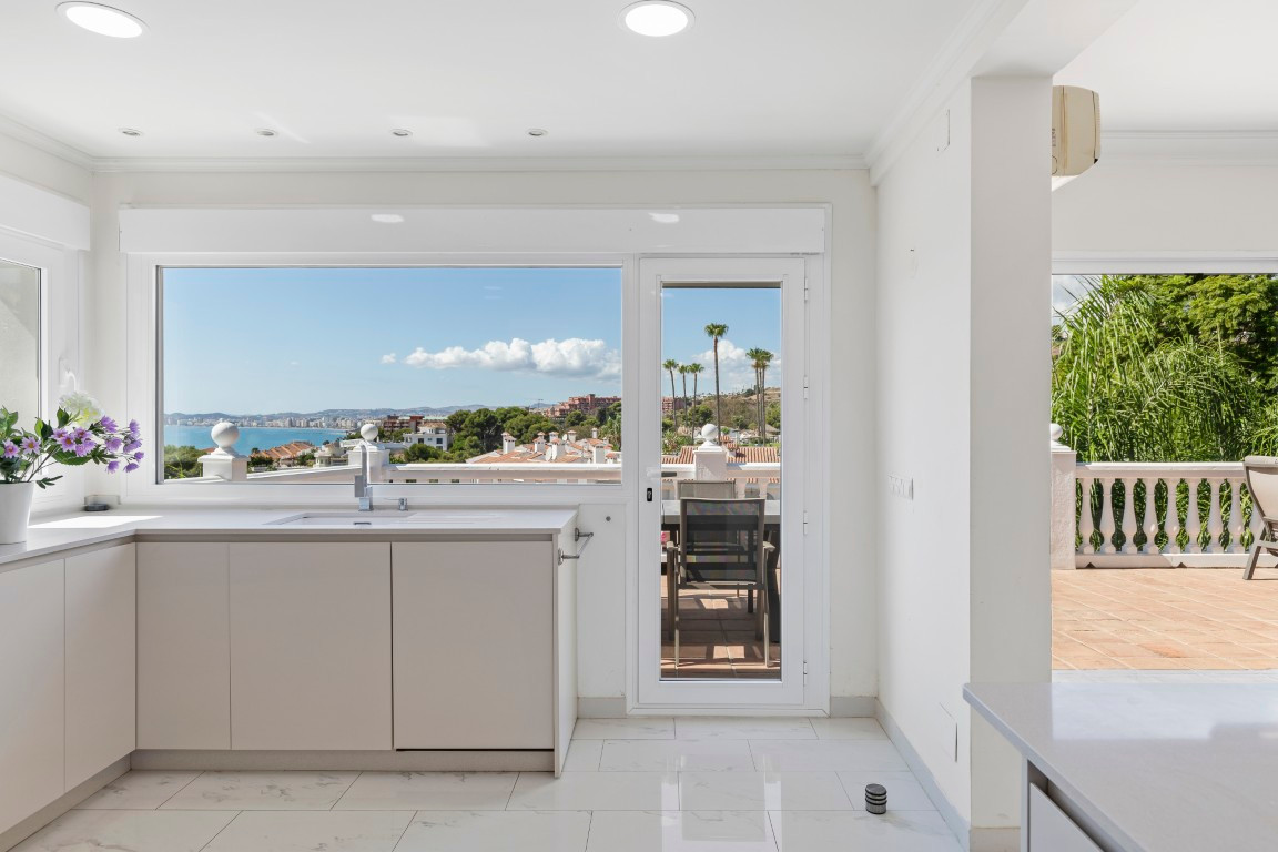 À seulement cinq minutes à pied de la mer et offrant une vue imprenable et dégagée sur la Méditerranée, cette villa à Torremuelle, Benalmádena, est bien plus qu'une propriété, c'est une invitation à vivre entourée de lumière, de tranquillité et de nature.
