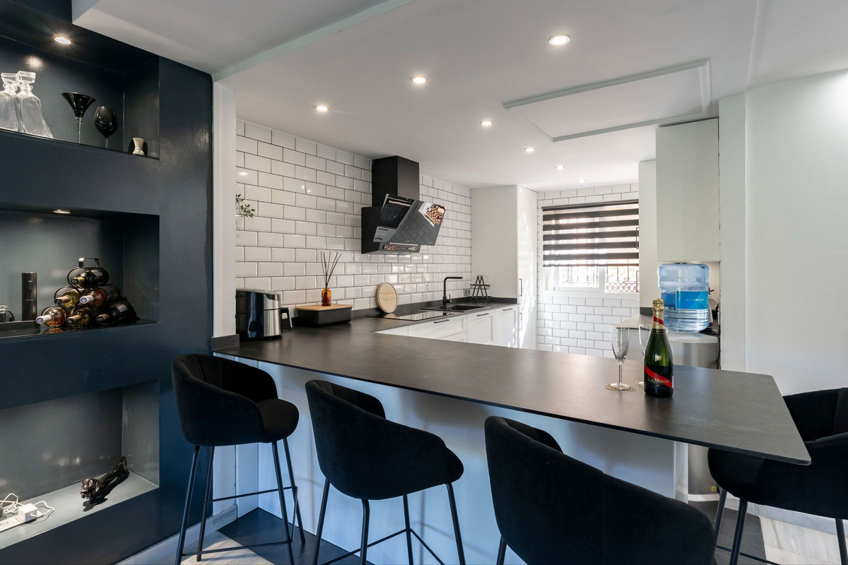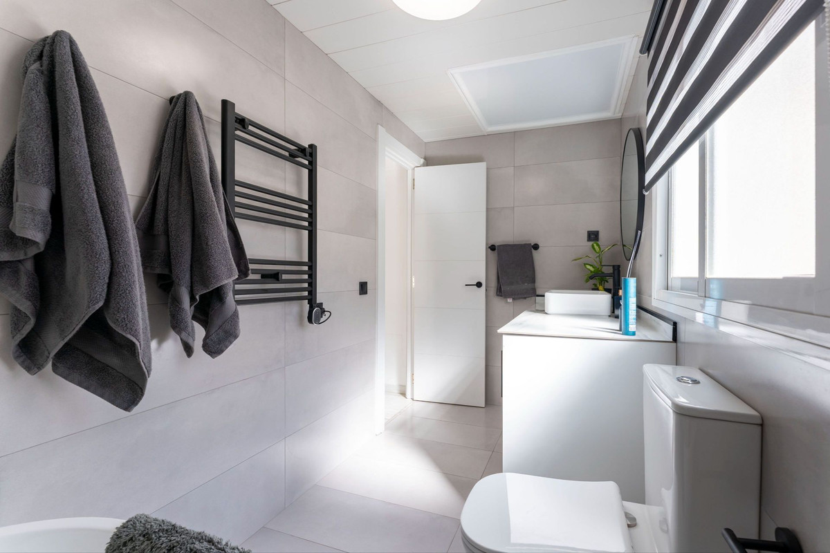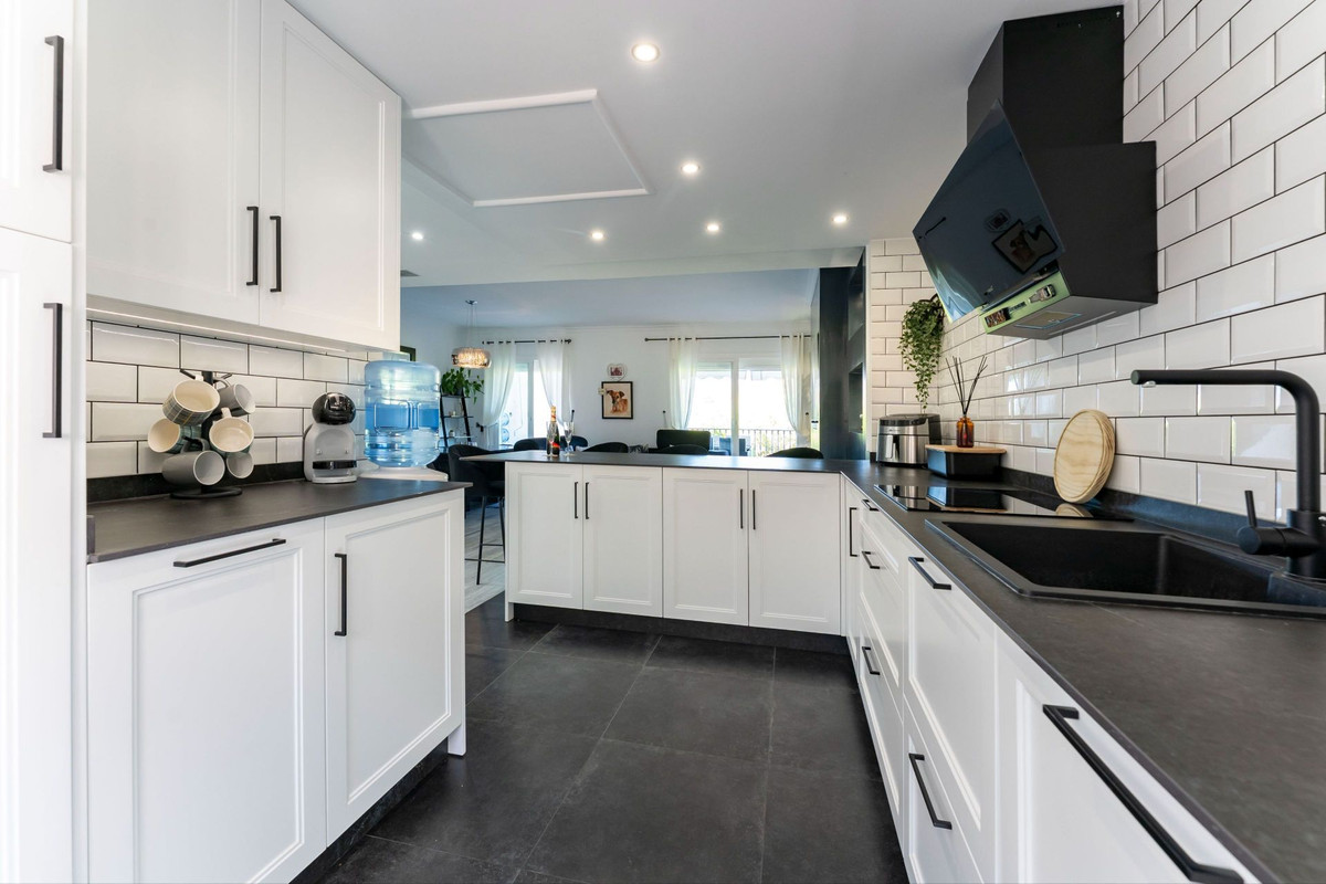 À l'étage : trois chambres doubles avec placards intégrés, dont la chambre principale avec salle de bains privative. Les deux autres chambres partagent un accès à une terrasse ensoleillée, ainsi qu'une salle de bains familiale moderne.