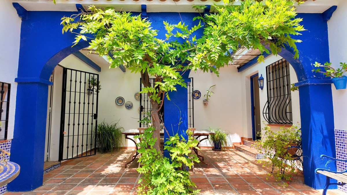 À votre arrivée, vous serez accueilli dans un patio espagnol traditionnel, parfait pour un petit-déjeuner tranquille ou un café du matin au soleil.