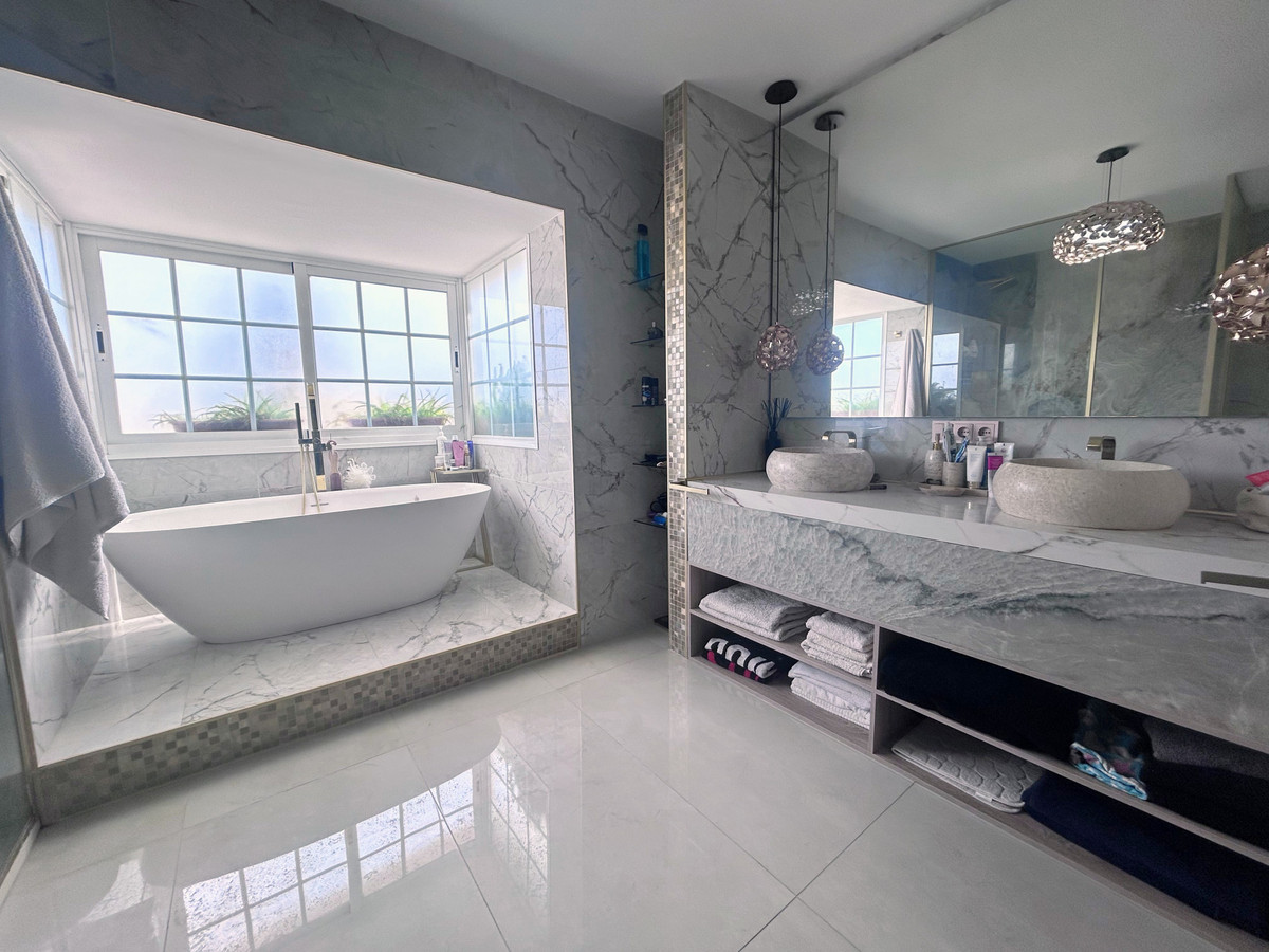 Entièrement rénovée en 2022, la villa allie un design moderne et épuré à des proportions généreuses. Les pièces à vivre principales sont lumineuses et accueillantes, avec une cuisine contemporaine entièrement équipée ouverte sur la salle à manger et le salon, idéale pour la vie quotidienne et les réceptions. Avec ses 7 chambres et 7 salles de bains, la maison est idéale pour les familles nombreuses ou les invités recherchant intimité et confort.
