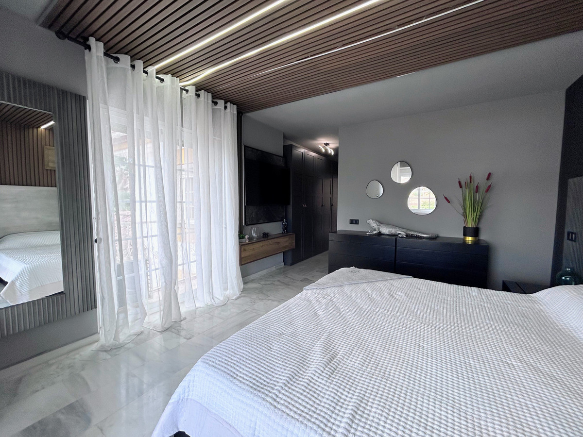 La vie en extérieur est au cœur de cette propriété, avec une grande piscine privée entourée de jardins arborés, créant un cadre idéal pour se détendre ou profiter du soleil de la Costa del Sol. Le sous-sol de 180 m² reste à aménager et offre d'innombrables possibilités pour aménager une salle de cinéma, une salle de sport, un spa ou un espace de divertissement à votre goût.