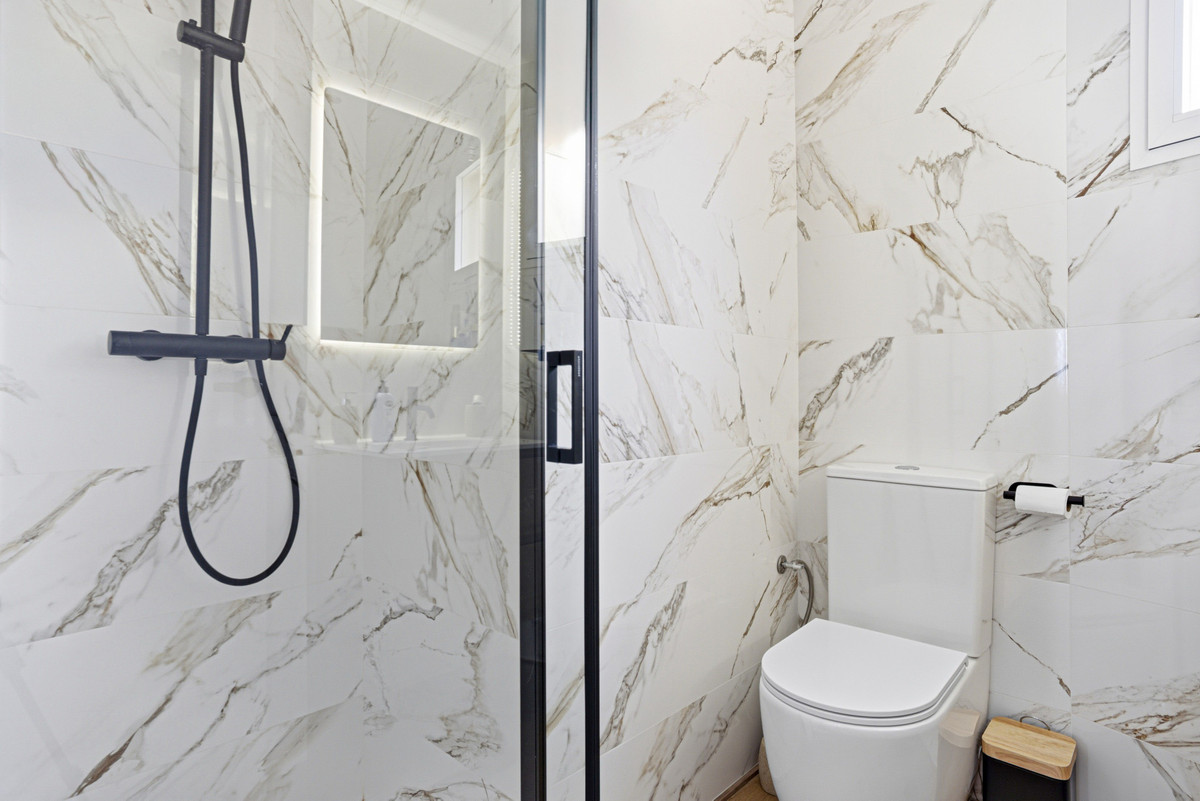 Impeccable, south-facing two-bedroom apartment, located in the gated community of Terrazas del Sol, a beautifully maintained complex in the higher part of Riviera del Sol. Residents enjoy access to a large communal swimming pool and lush landscaped gardens. Just a half hour drive from Malaga airport, with a bus stop nearby plus the property is also close to tennis courts, golf courses, restaurants and shops. The property is fully renovated and designed for modern living with a bright open-plan living room and kitchen; mastersuite; gust bedroom; guest bathroom; and a private terrace with stunning panoramic sea views; perfect for relaxing and watching the sunset. Other features include a brand new AC unit, private parking space and seperte laundry room.