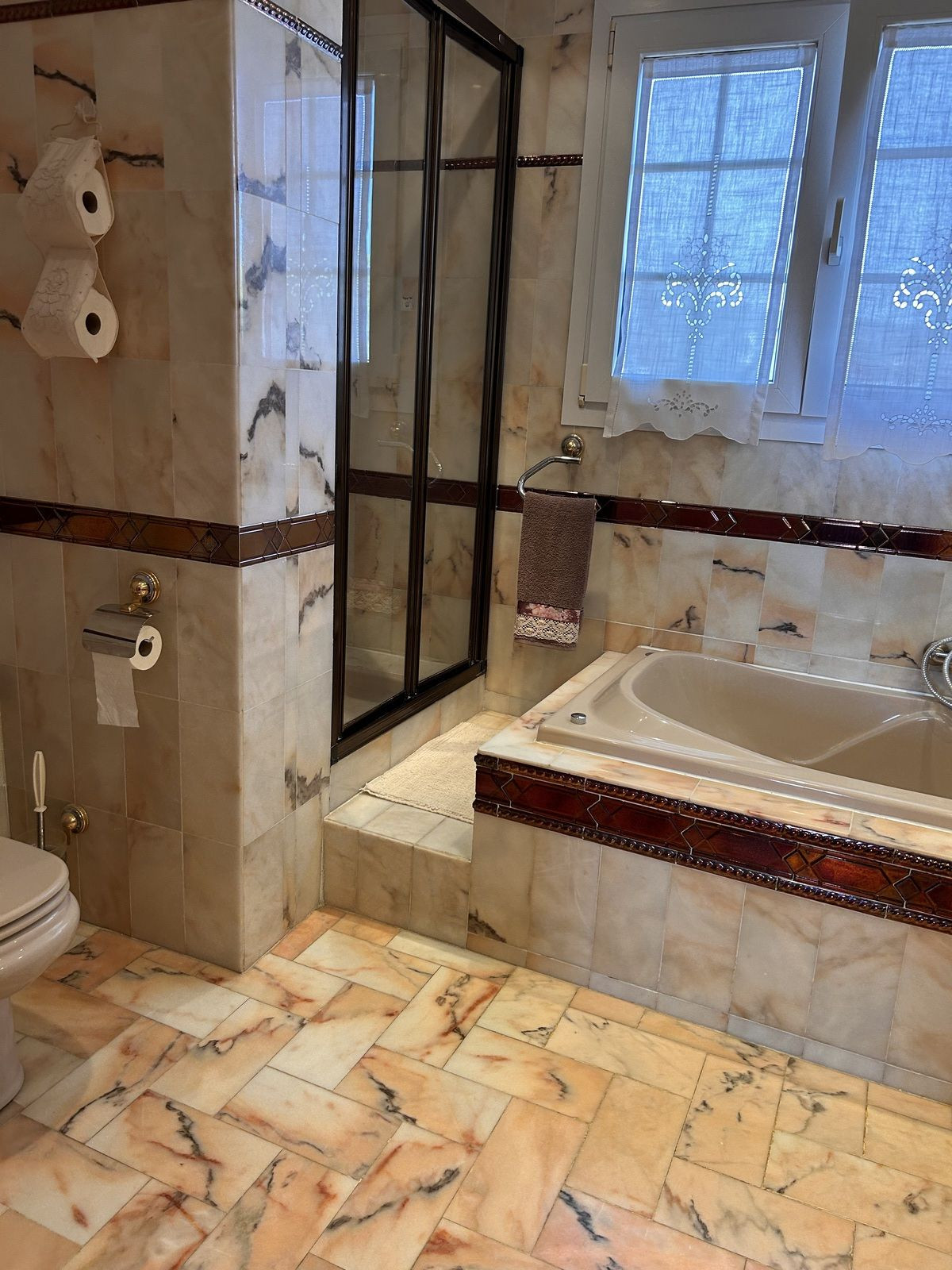 Four bedrooms and two bathrooms. The master suite features a walk-in wardrobe and an en-suite bathroom with both hydromassage bathtub and shower. Two double bedrooms with fitted wardrobes and a comfortable guest room complete this level.