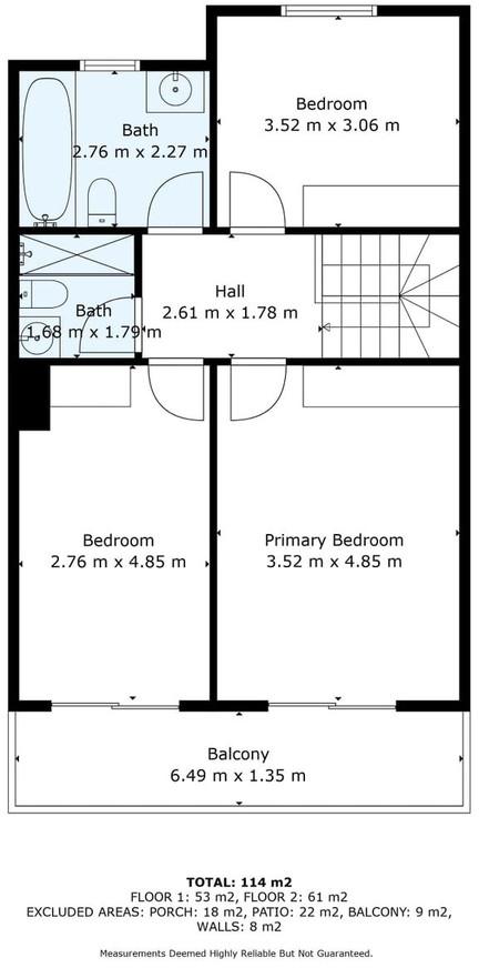 It's 3 bedrooms, 2 1/2 Bathrooms, with approx 146m2 built, and approx 50-60m2 additional outside space. You have sea views too!
