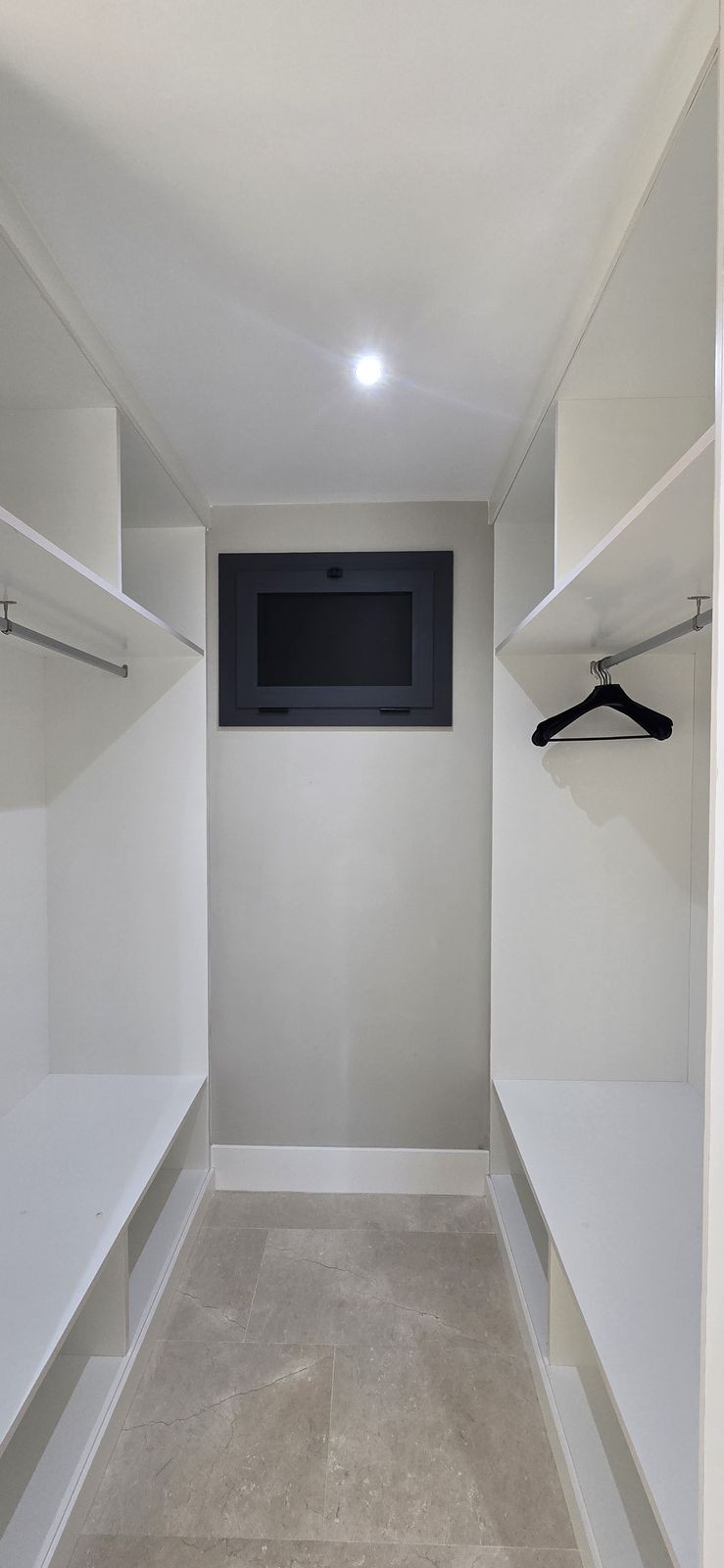 La terrasse s'étend sur deux niveaux : le niveau inférieur dispose d'un jacuzzi privé, idéal pour se détendre en toute intimité. Les deux chambres bénéficient d'un accès direct à la terrasse, baignant les pièces de lumière naturelle. La chambre d'amis est équipée de placards, tandis que la suite parentale dispose d'un dressing et d'une spacieuse salle de bains attenante avec double vasque et baignoire. Une salle de bains moderne avec douche à l'italienne complète ce bien.