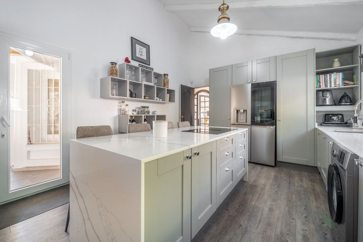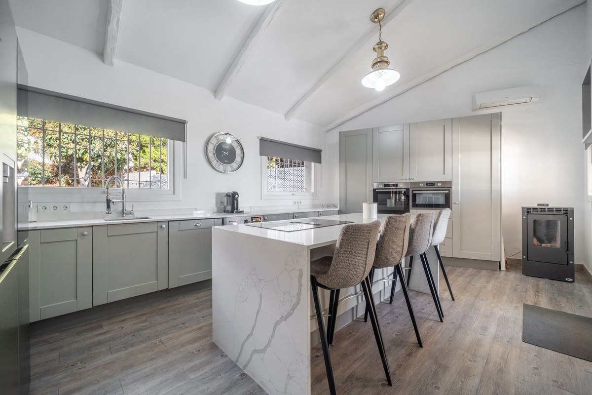 The Villa was recently renovated and tastefully decorated. On the entrance level you will find 2 guest bedrooms sharing one bathroom, a brand new kitchen with kitchen island, a spacious and bright living room with fireplace opening up to a conservatory used for dining. All windows in the conservatory can be folded away, leading out to the easy maintenance garden with spectacular views, several sitting areas, a great pool and an outdoor kitchen with BBQ.