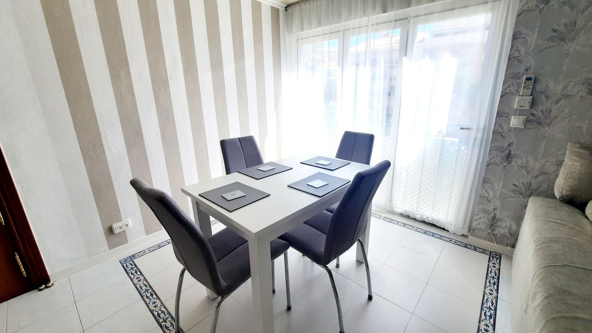Location, location, location!!! Top floor apartment for sale in one of he main avenues in Fuengirola very sunny and bright. with a large comunal solarium with pergola, bbq, dining area and sun beds which can be used at any time by the neighbors. The property has been renovated with new wooden floors in the bedroom, new shower room, and open plan lounge dining with balcony. There is a fantastic communal solarium . SECOND FLOOR NO LIFT Has A/C and electric shutters in the lounge. Ideal for a holiday place.