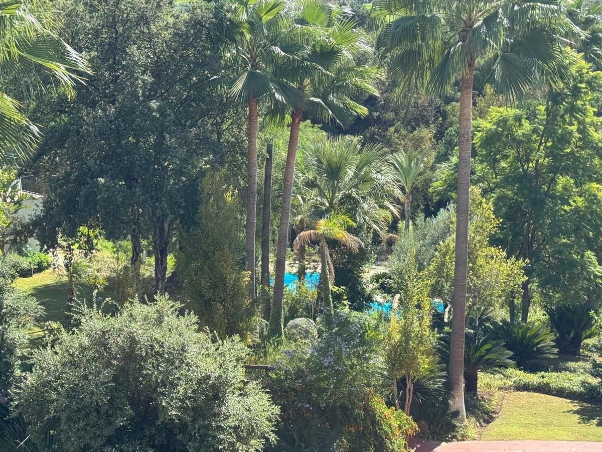To your left, a recently refurbished, fully equipped kitchen features modern fittings and a new water boiler. From here, step out onto a charming covered terrace — a peaceful spot for morning coffee under the soft sun, with uninterrupted views of mature greenery and the fairways of Alhaurín Golf. Sheltered from the intense afternoon heat, it’s also an inviting retreat for summer relaxation.