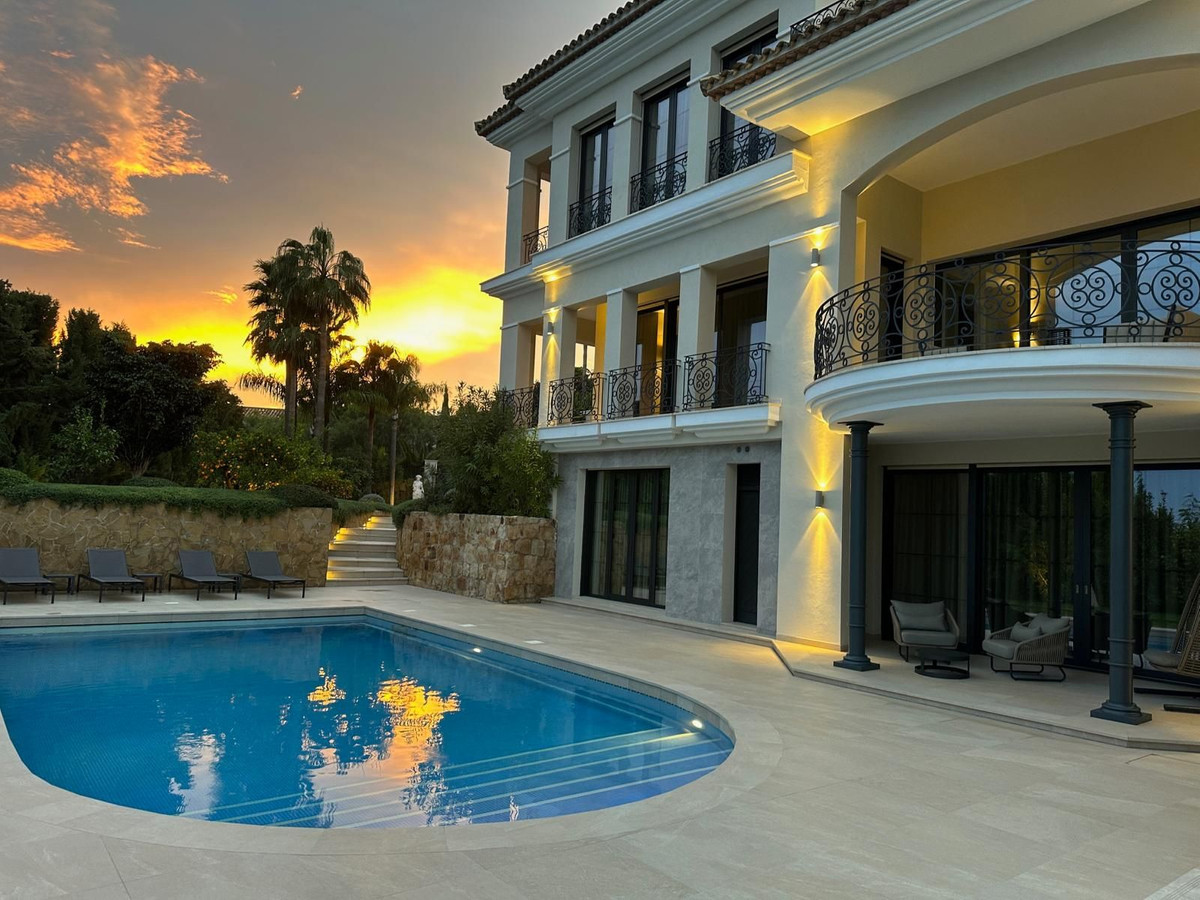 Impressive luxury villa located in the exclusive gated community of "Cascada de Camoján" – Sierra Blanca, one of the most prestigious residential areas in Marbella. Set in an elevated position above the city, this residence offers complete privacy and breathtaking panoramic views of the Mediterranean Sea, La Concha mountain, and the coastline stretching to Puerto Banús.