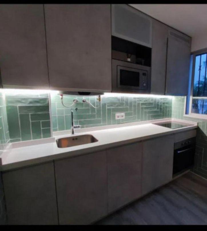Electricity and plumbing changed, plus bathroom, kitchen, new interior doors and new doors for the built-in wardrobes, laminate flooring with wood imitation throughout the apartment except in the bathroom which is porcelain.