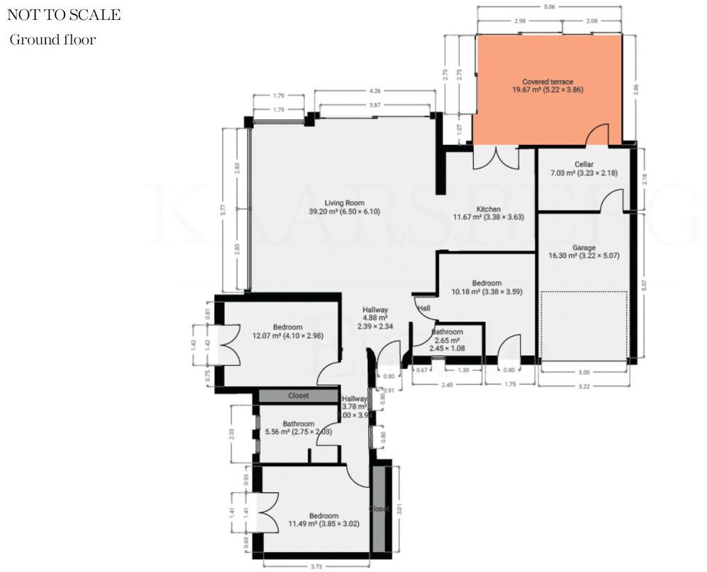 This lovely home offers three bedrooms and two bathrooms, spread across 119 m² of living space on a generous 600 m² plot.
